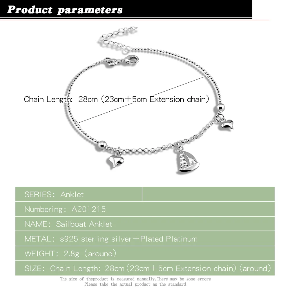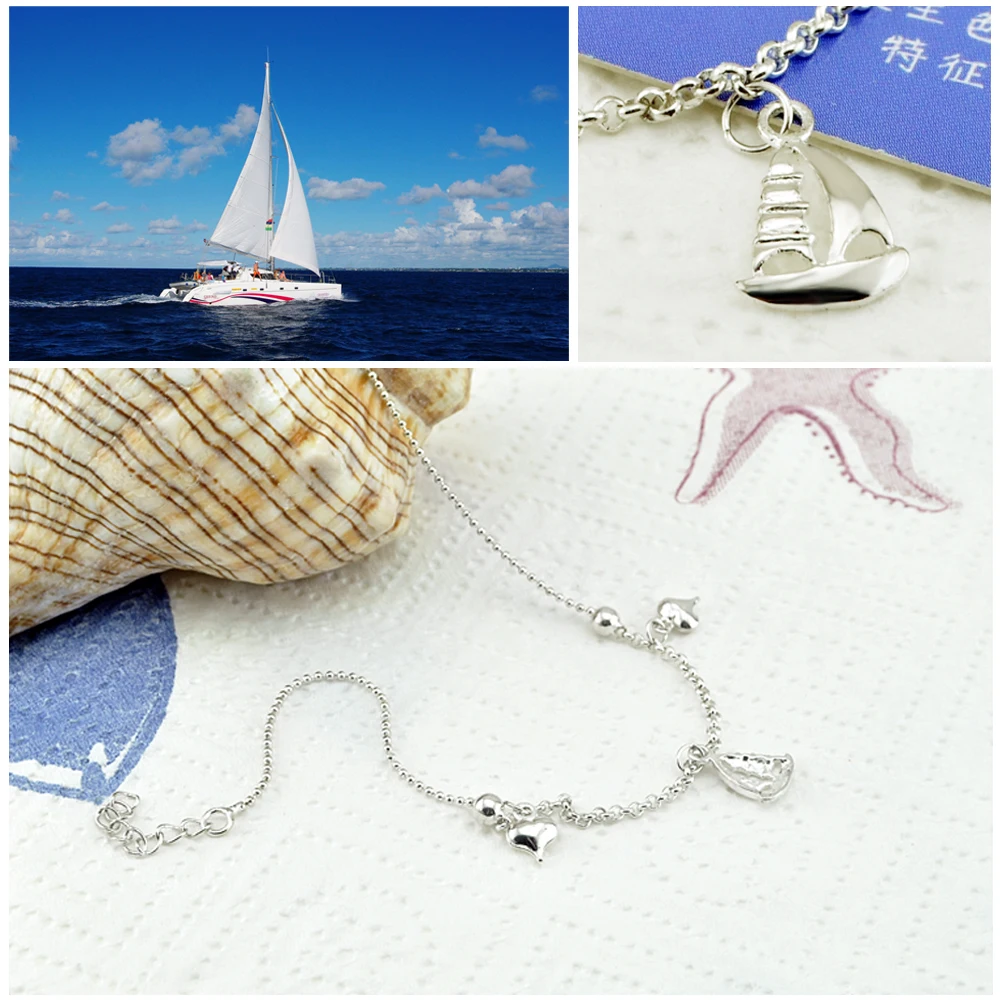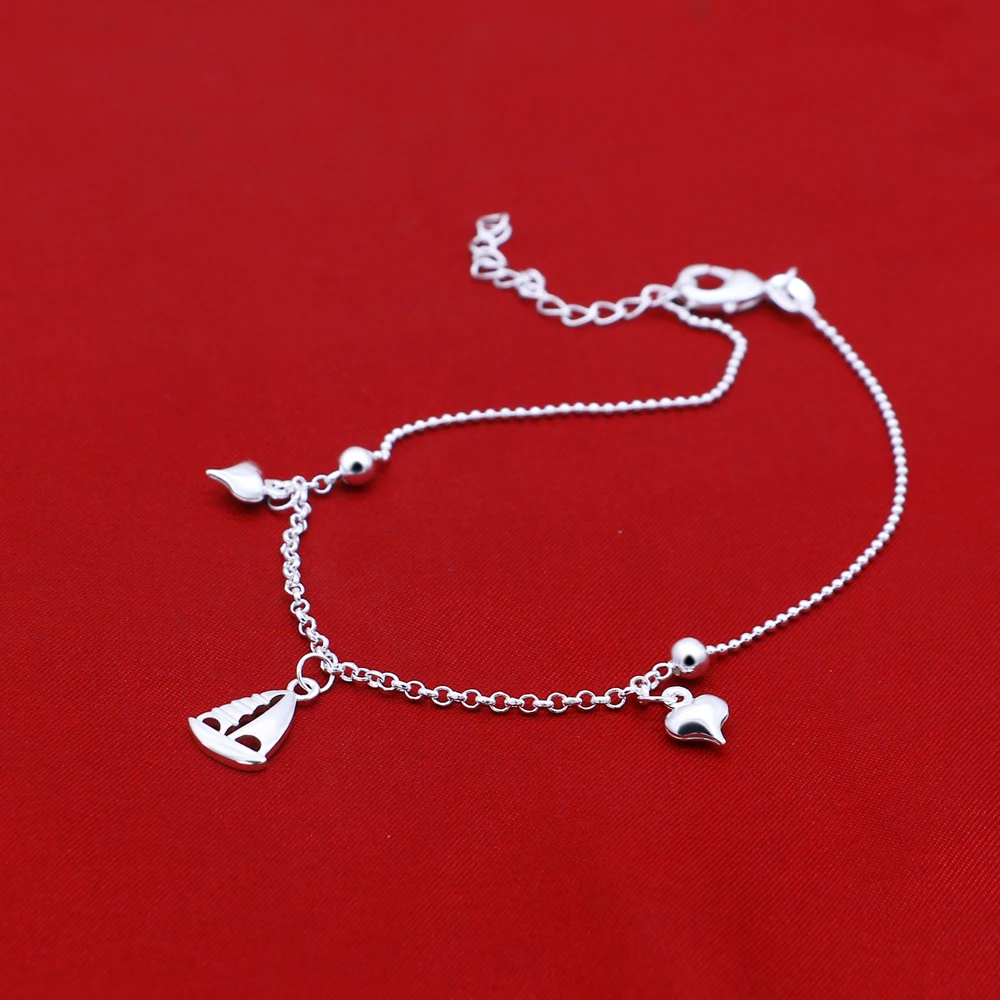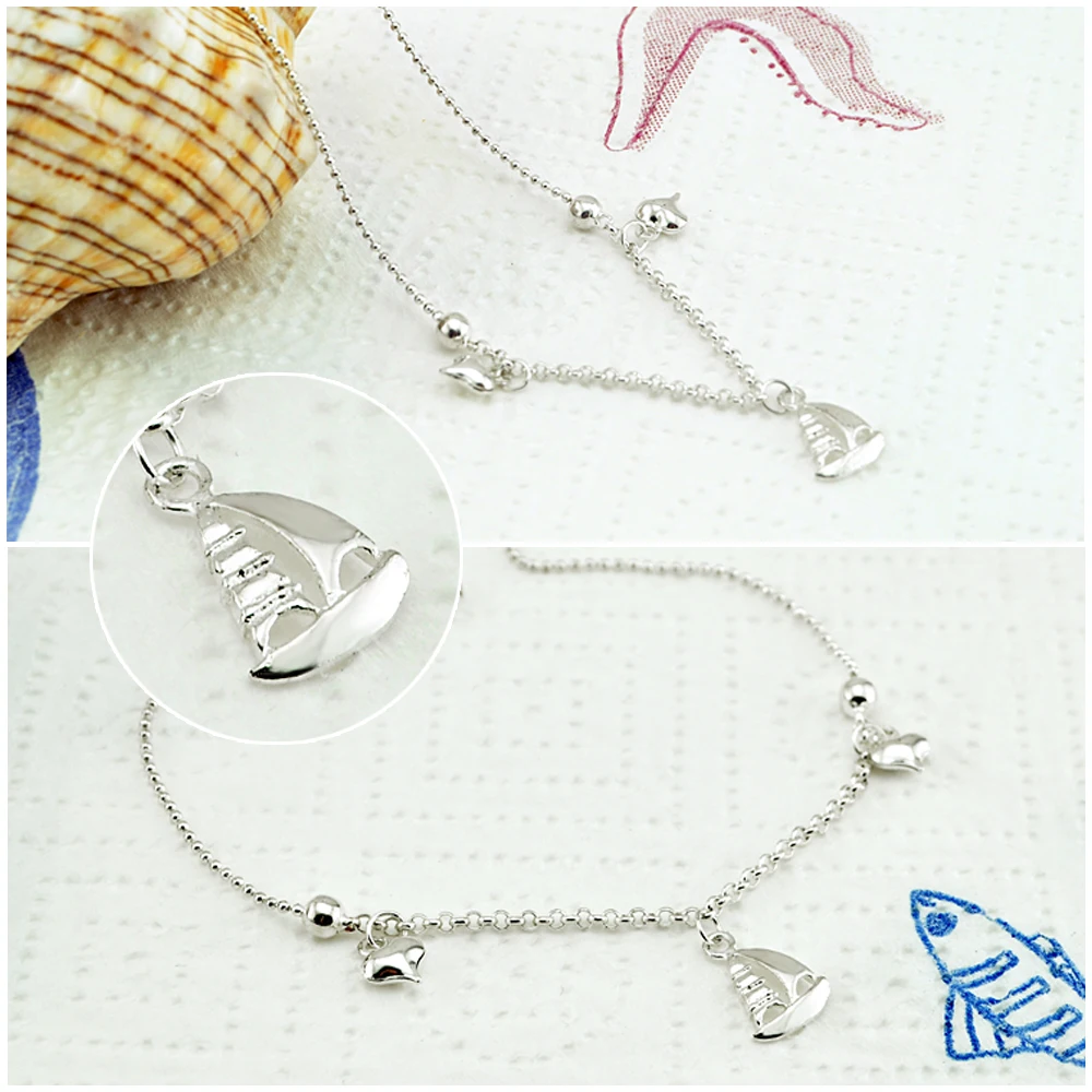 Браслет на ногу Женский, из серебра 925 пробы, с простым сердцем, браслеты на босую ногу