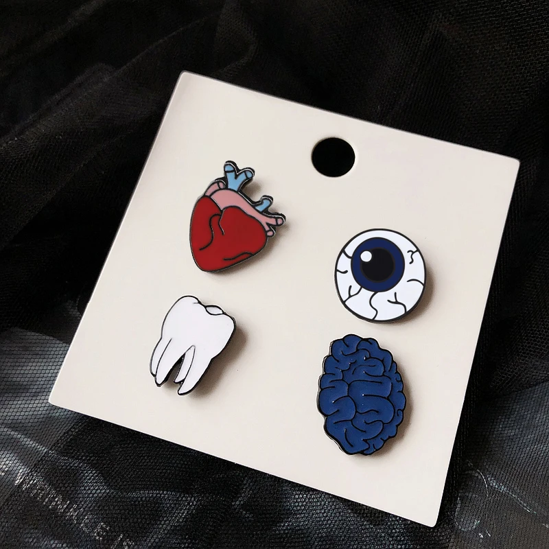 Брошь на булавке в виде органа, медицинского стетоскопа, сердечного зуба, мозга, глаза, Значки для врача, медсестры, украшения для стоматологов, эмалированная булавка на воротник