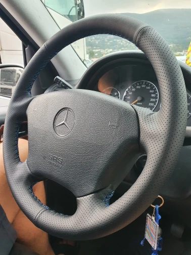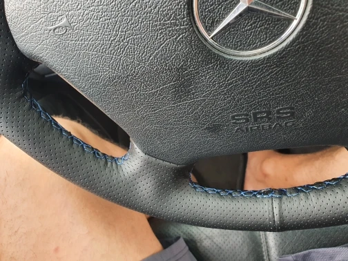 Чехол рулевого колеса автомобиля из искусственной кожи, сшитый вруч...