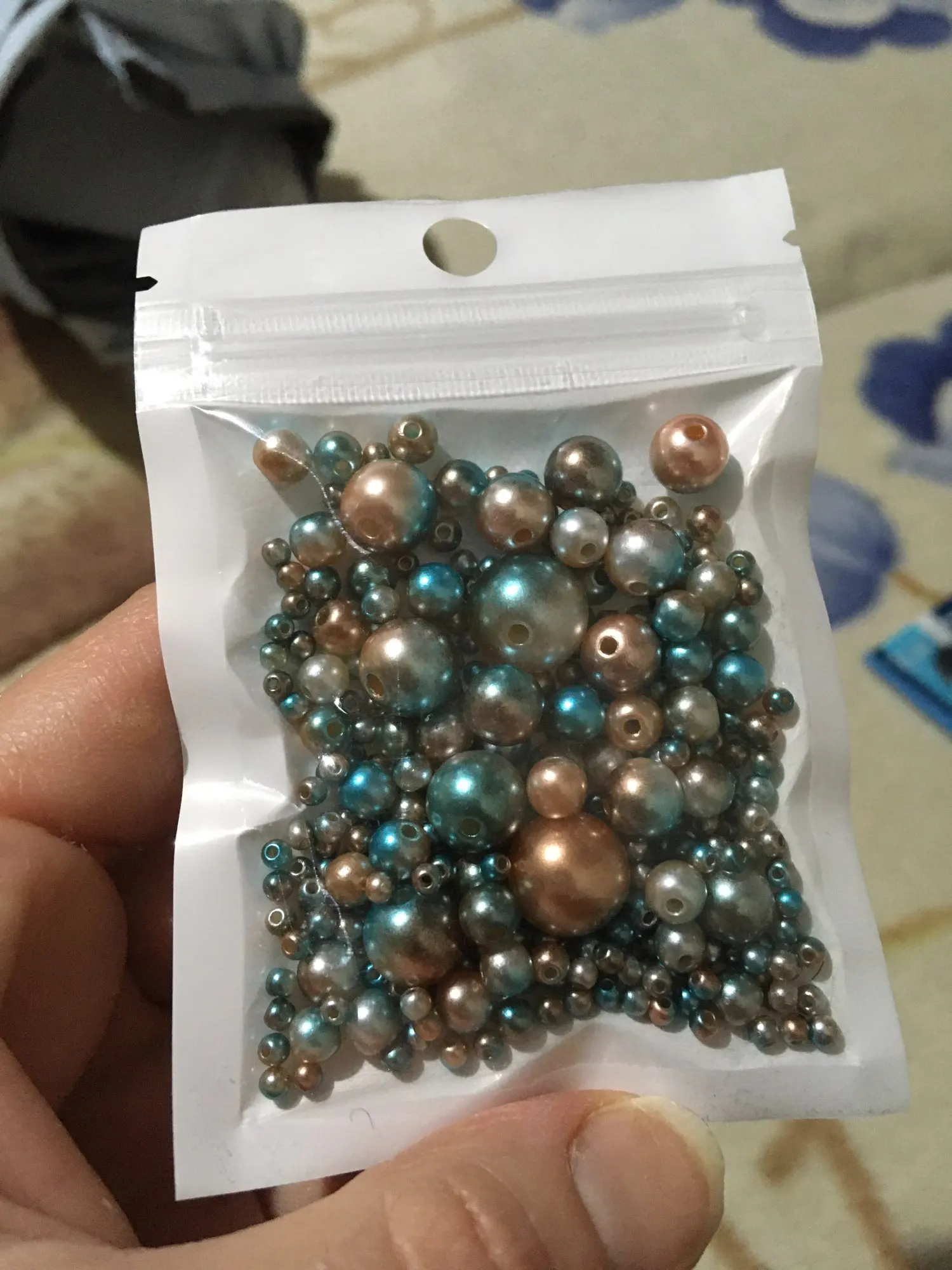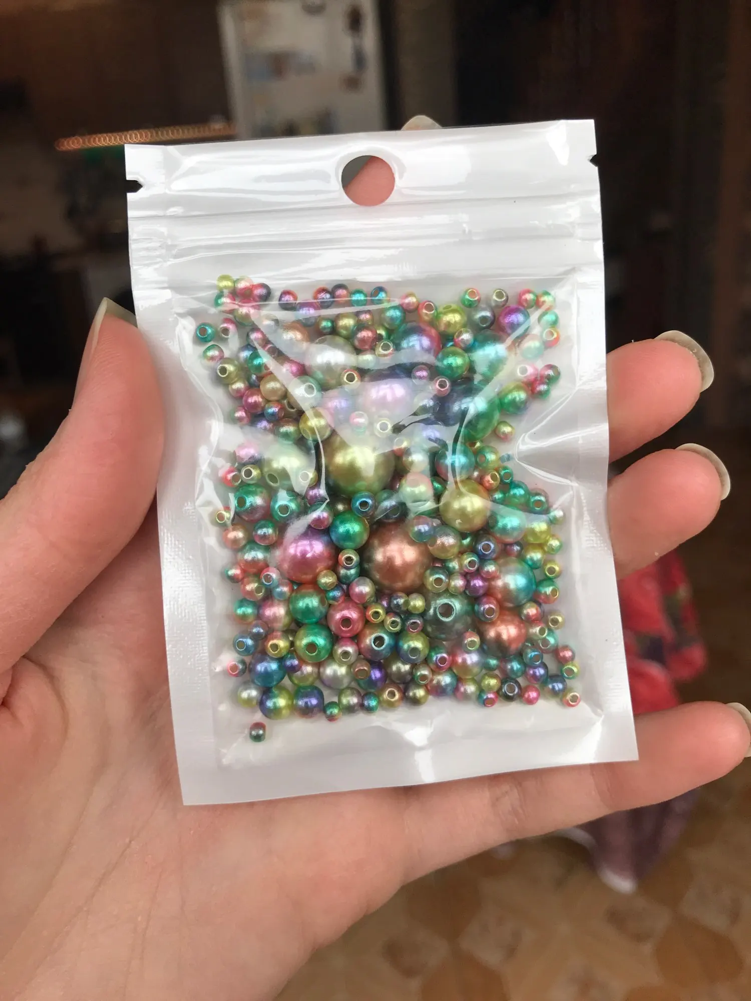 всё отлично, товар пришел очень быстро, даже не ожидала что так оперативно сработают, в комплекте шёл маленький мешочек для бусин) приятный сюрприз) заказывала белые бусины и эти цветные, всё отлично, только мне думалось что бусинки больше по размеру, оказались маленькими. много мелких, средних штук 8 и самых крупных 2 штучки пришло. в любом случае спасибо продавцу, они красивые))