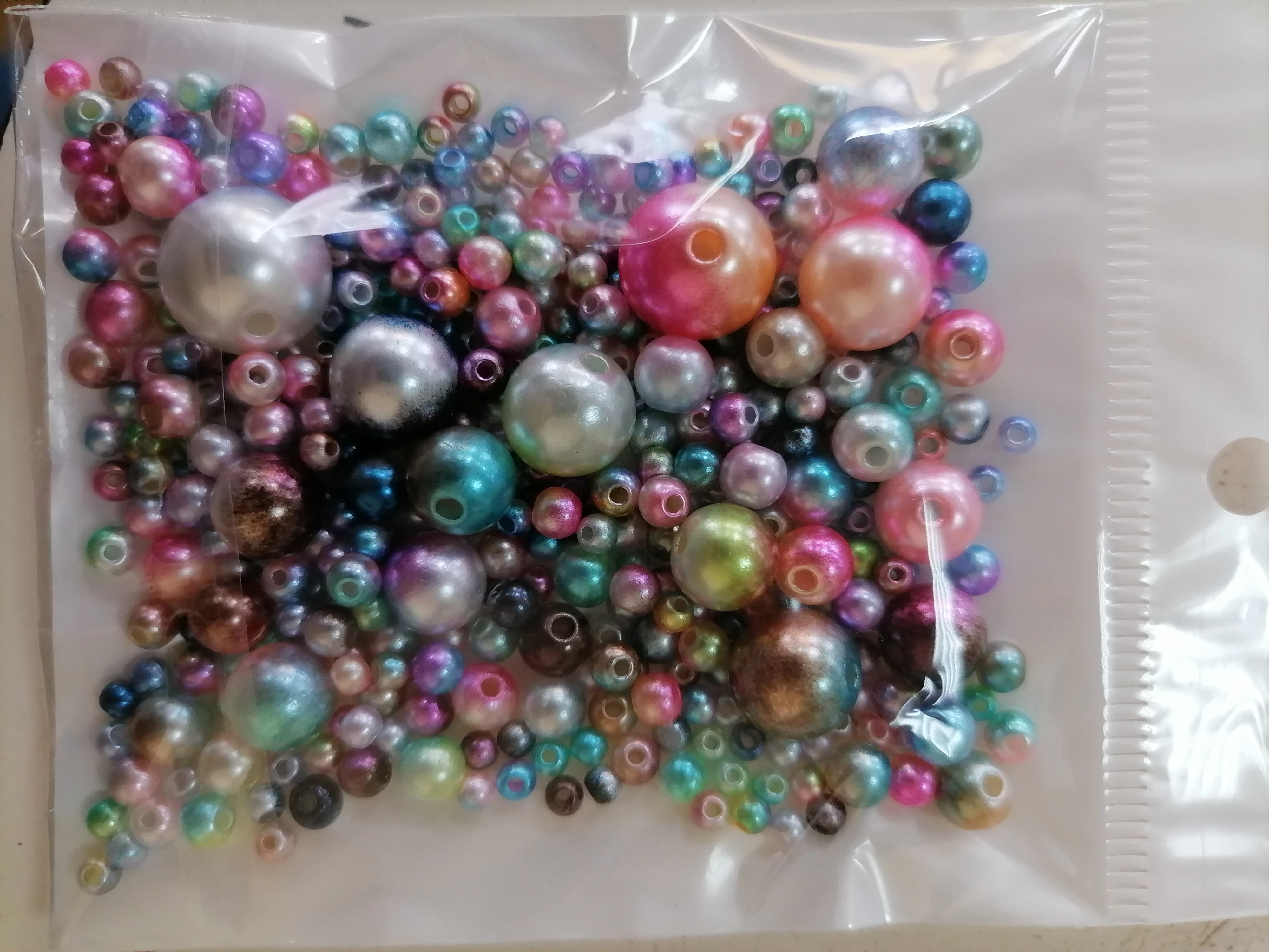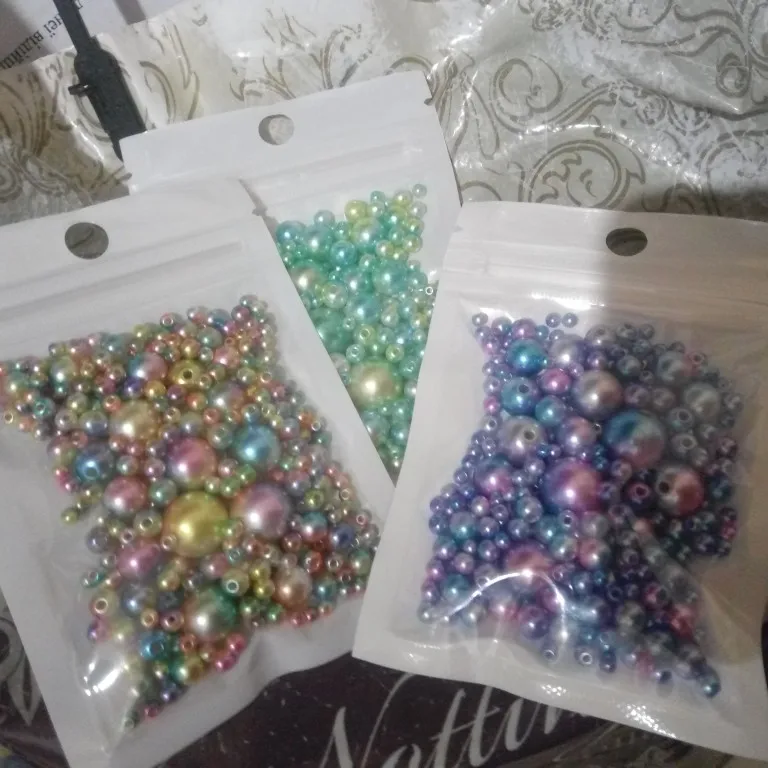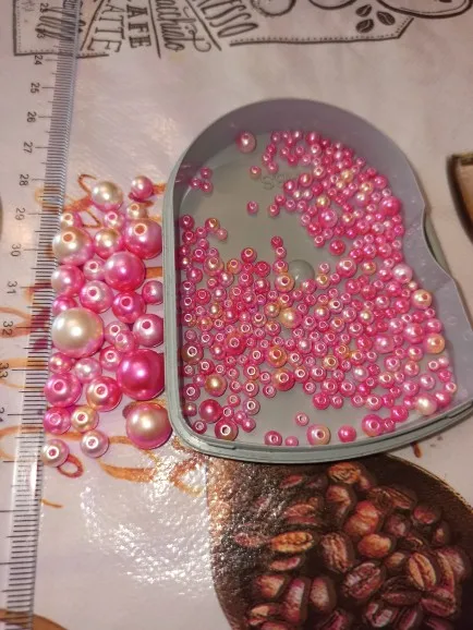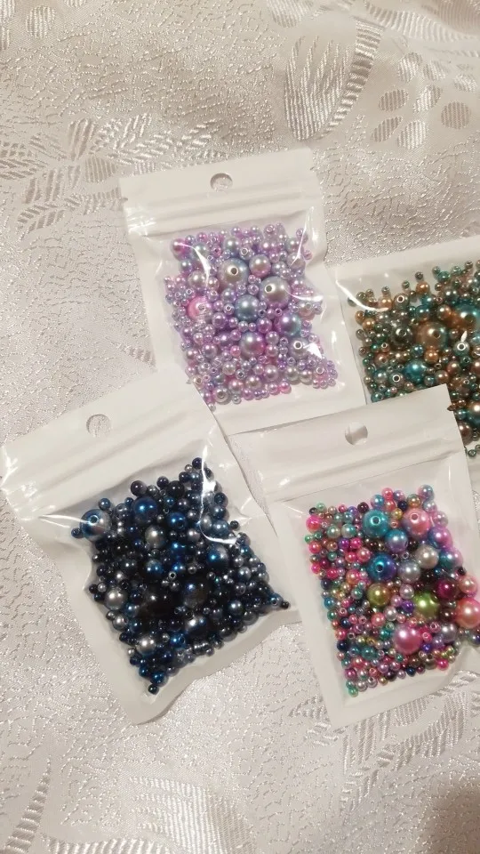 Отличные перламутровые бусинки, разного размера, описанию соответствуют, не пересчитывали, на вид много, доставка 3 недели, в сборной посылке. Рекомендую