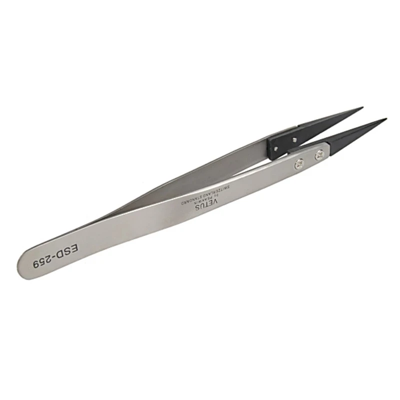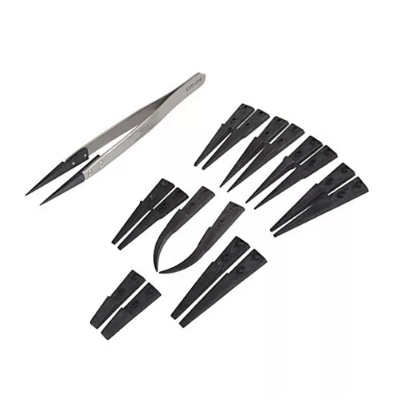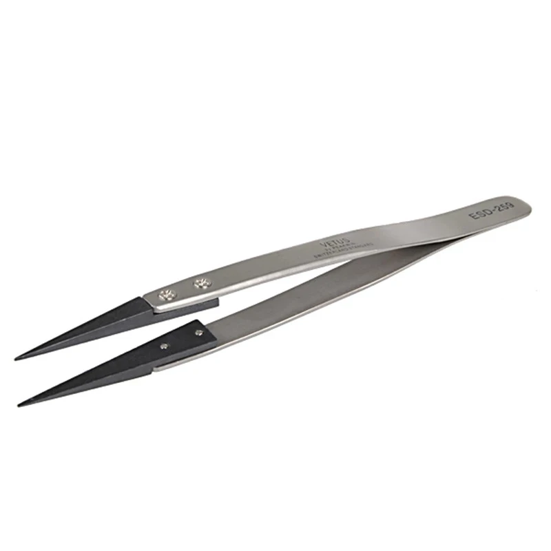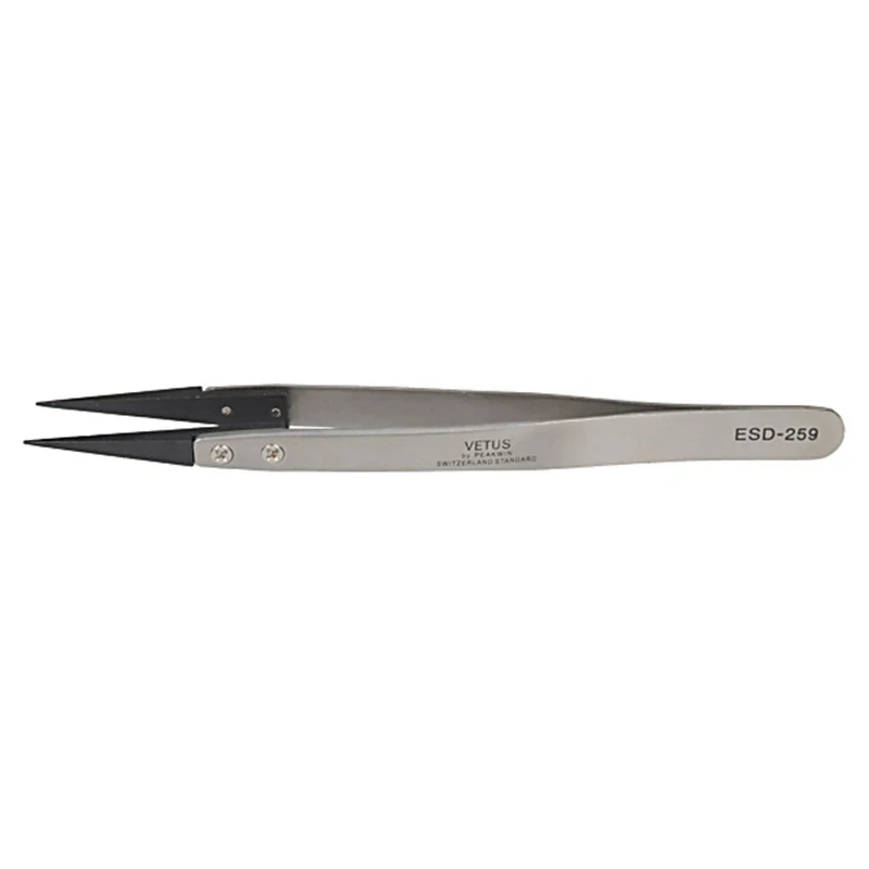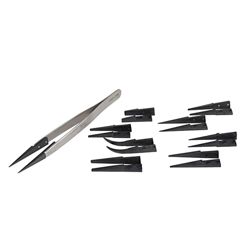 Пинцет Vetus ESD 259 из нержавеющей стали с высококачественной ручкой и 8 антистатическими пластиковыми наконечниками для различных работ