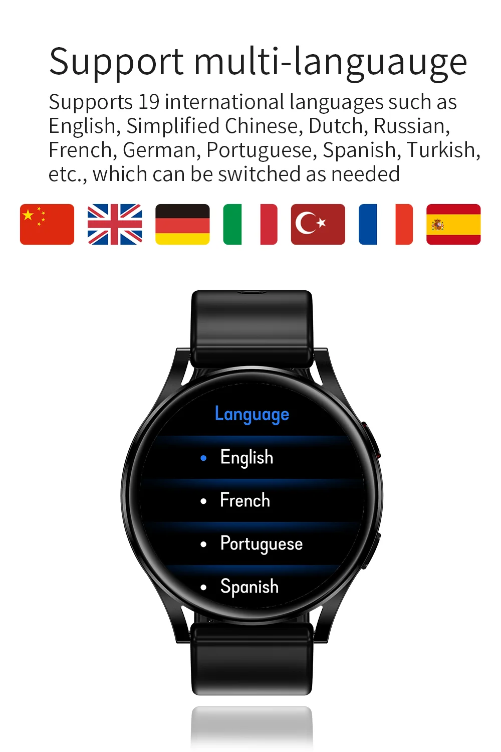 Поддерживает 19 международных языков, таких какАнглийский, упрощенный китайский, голландский, русский, французский, немецкий, португальский, испанский, турецкий и т. Д.