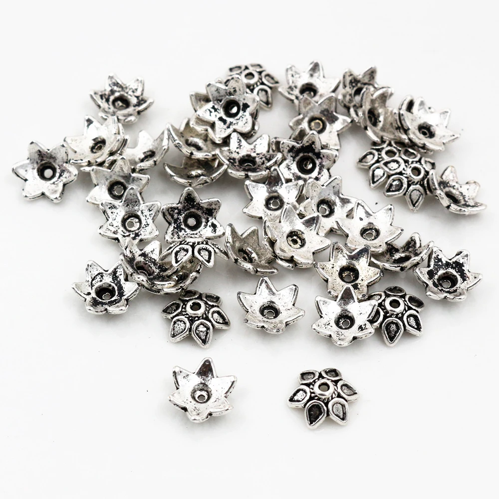 10 мм 50 шт бисер колпачок античный серебряный цвет форма цветка бусины концевые колпачки для женщин ювелирные изделия делая концевые колпачки