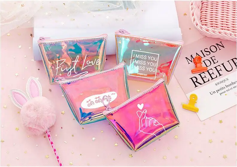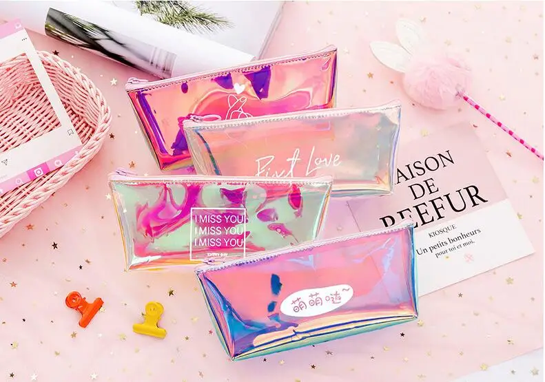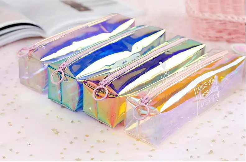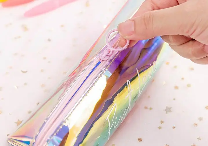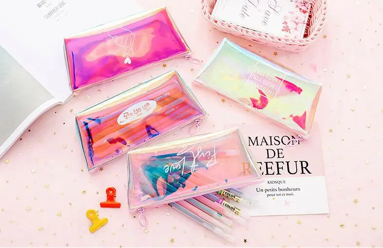 Прозрачный чехол для карандашей, цветной, с лазерной печатью, Модный чехол для карандашей, школьные принадлежности, чехол для карандашей