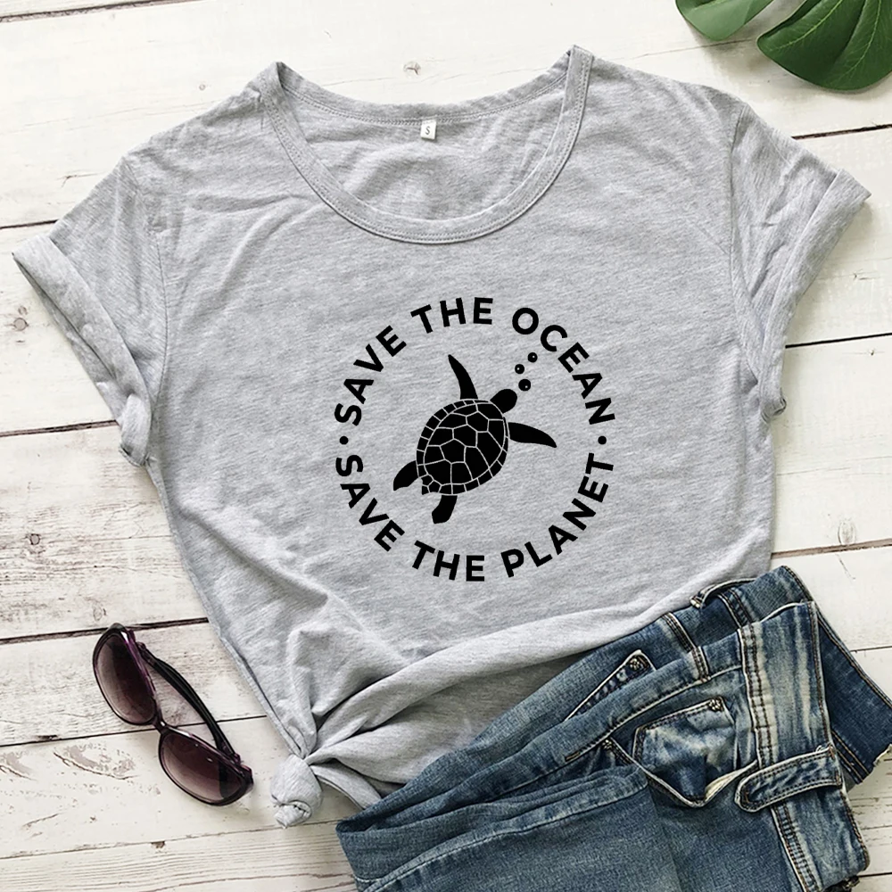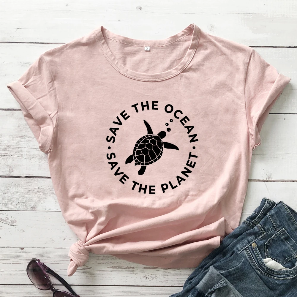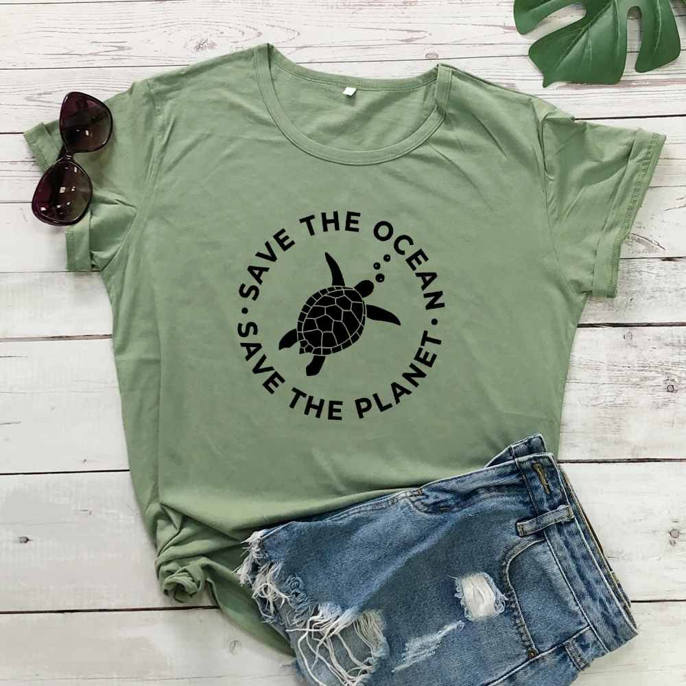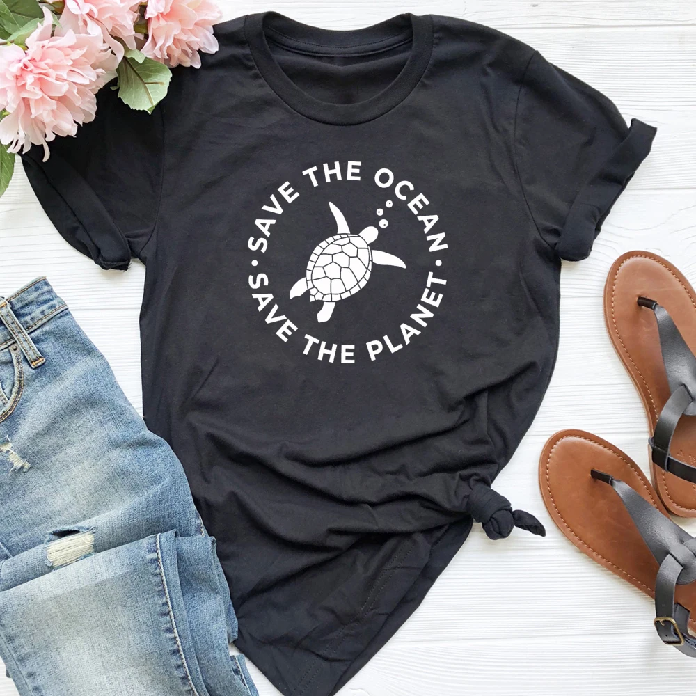 Футболка с принтом в виде черепахи Save The океана Save The Planet стильная женская футболка с графическим принтом и эко-принтом летняя хлопковая Футболка с круглым вырезом и лозунг tumblr