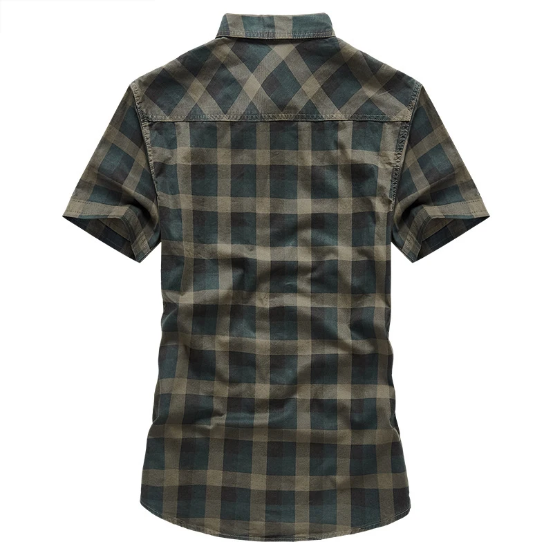 Мужская клетчатая рубашка, дышащая хлопковая рубашка с коротким рукавом, в стиле милитари, размеры 2020, лето M-4XL