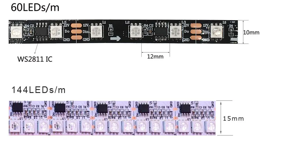 Светодиодная RGB лента WS2811 5050SMD, водонепроницаемая, 1 м, 2 м, 3 м, 4 м, 5 м, 304860 светодиодов на метр, пиксели с 1 платой управления, 3 светодиода, 12 В постоянного тока