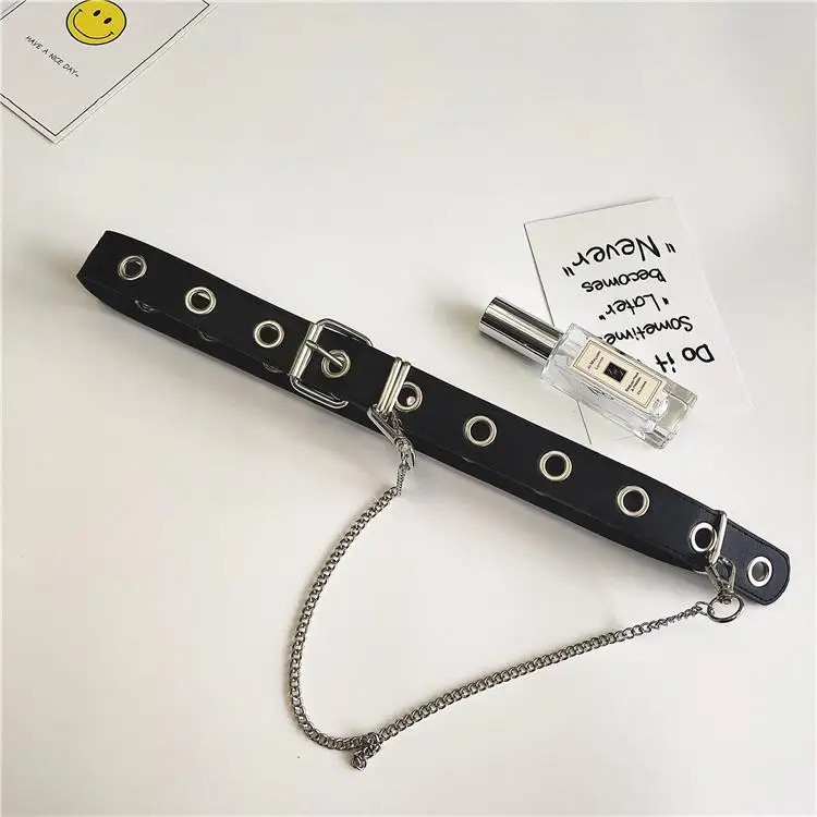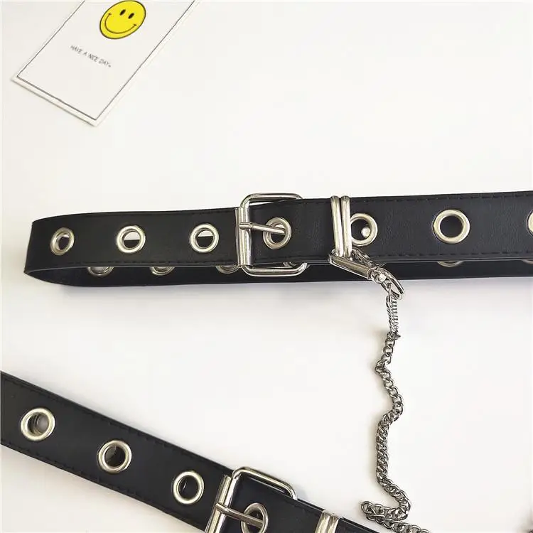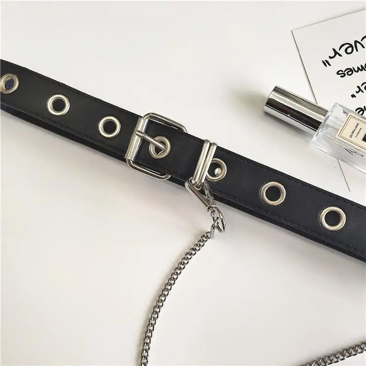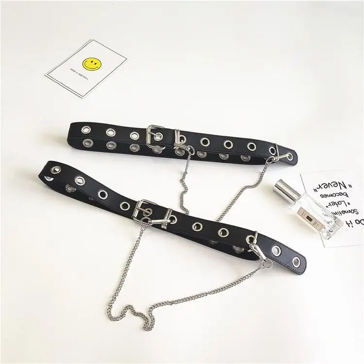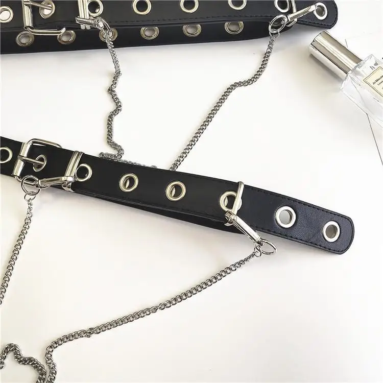 Новый Модный женский черный панк готический ремень из искусственной кожи с металлической цепочкой, поясной ремень, Длинные ремни, ремень для уличного танца