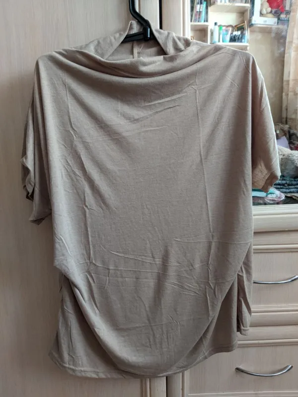 Единственное что понравилось, это быстрая доставка. Качество оставляет желать лучшего... Заказывала такую блузку другого цвета и у другого продавца, там и качество ткани хорошее-плотное, и сшита хорошо и такой же размер подошёл хорошо. А здесь ткань тонкая, сшита ужасно, широченная, горловина вообще не лежит, а выворачивается нитками наружу.....Не советую