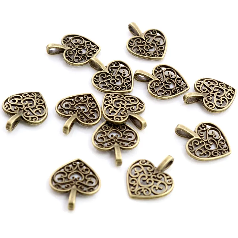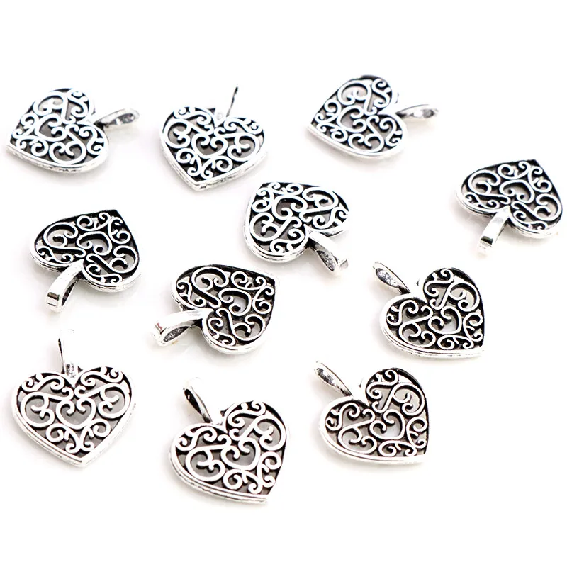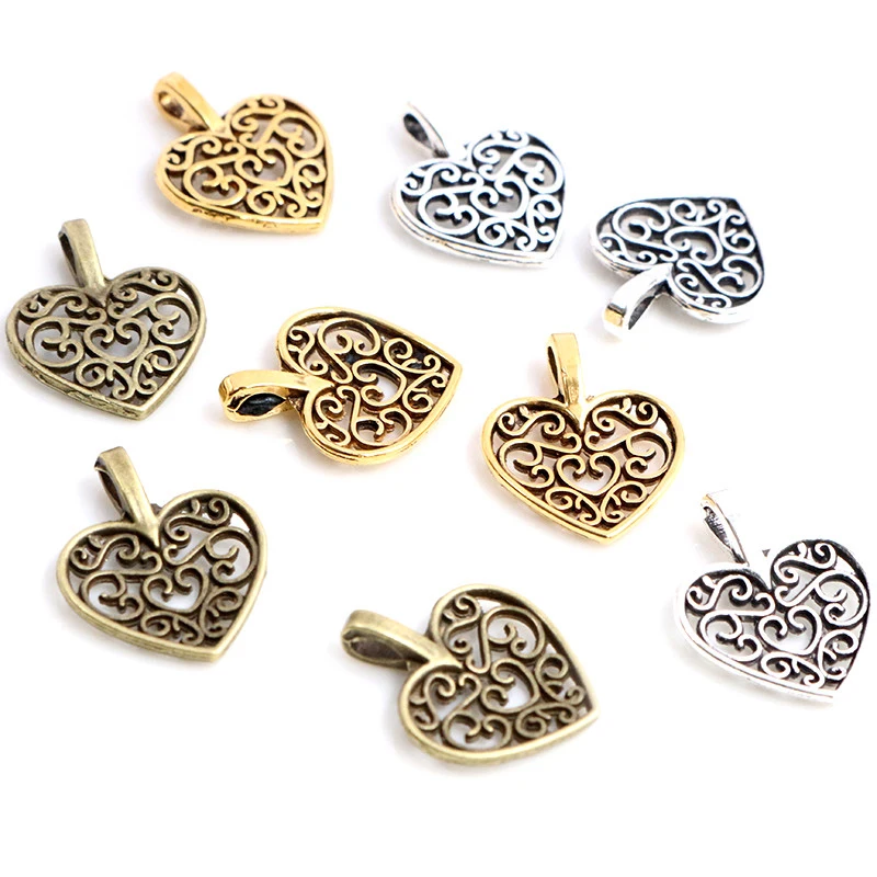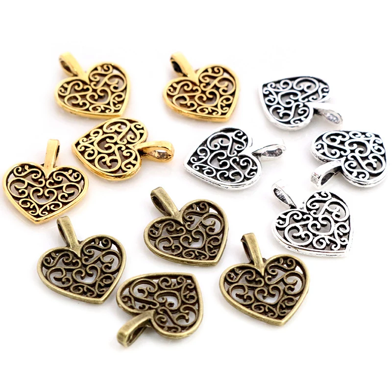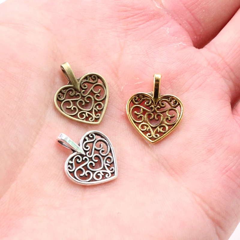 30 шт Очаровательные Полые милое сердце 16x14 мм Античное изготовление Кулон fit, винтажный Тибетский посеребренный бронза, DIY браслет ожерелье