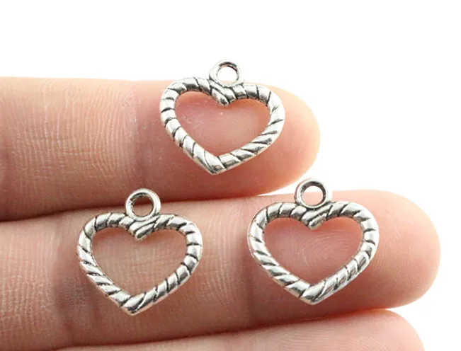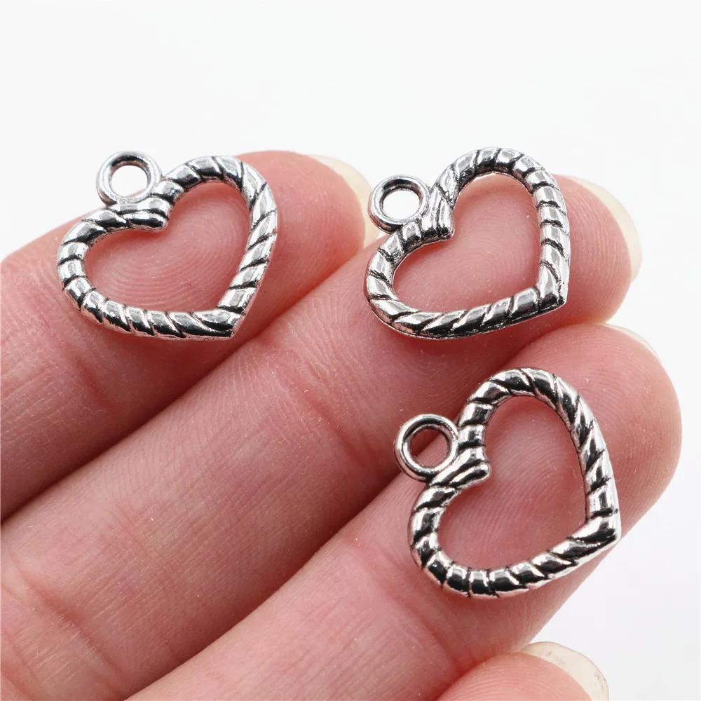 17x17 мм 30 шт античные посеребренные Подвески ручной работы в форме сердца: сделай сам для браслета necklace-P5-12
