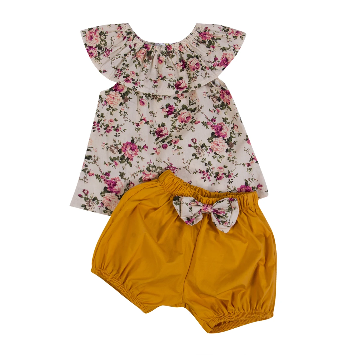 Комплект из двух предметов: топ с оборками и шорты с бантом для маленьких девочек