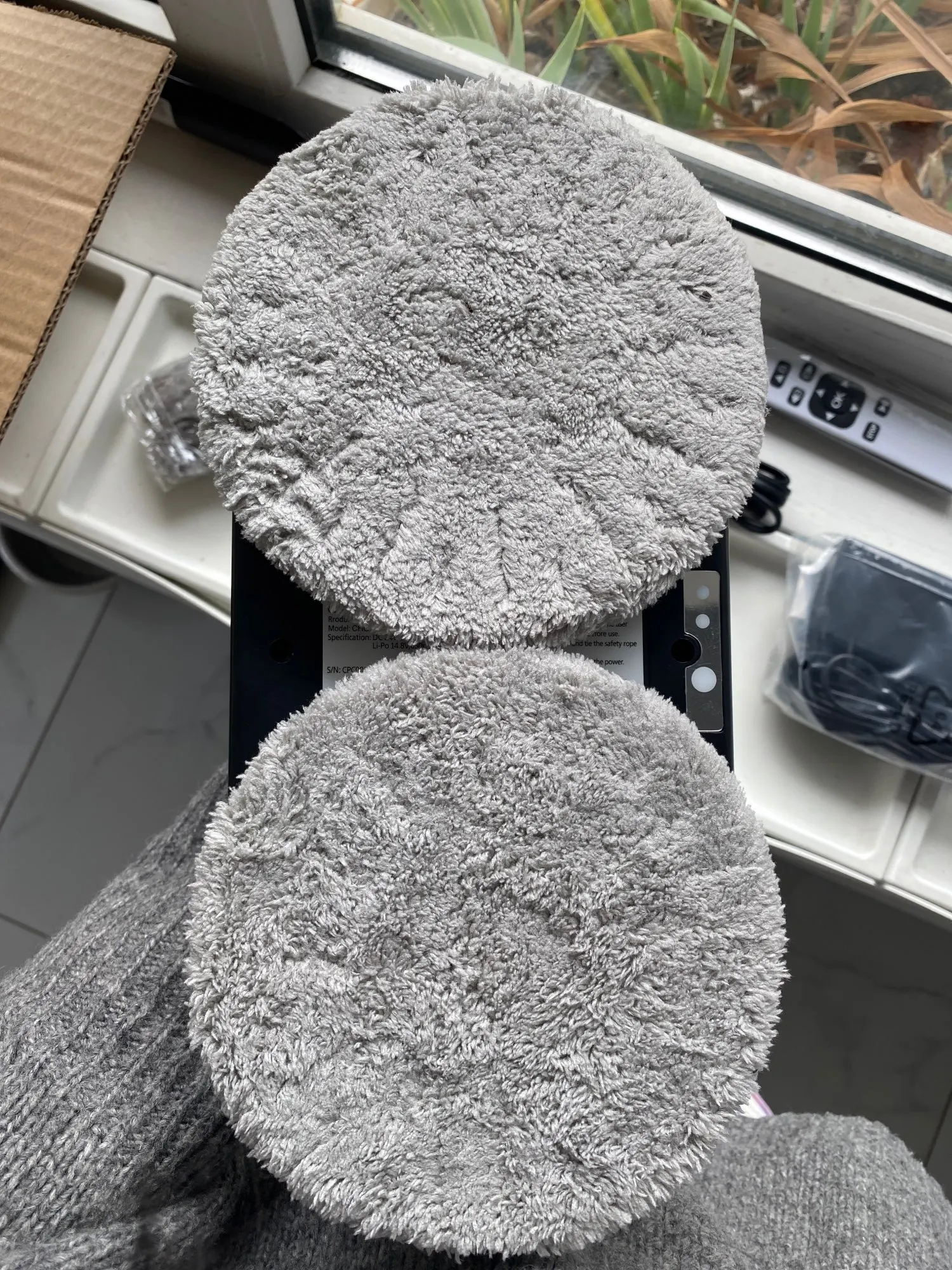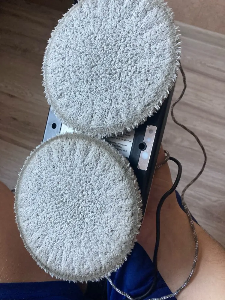 Мой маленький помощник. Очень нужная вещь в доме. Пришел очень быстро. Буквально через пару дней после заказа привез курьер. Инструкция конечно очень корявая, но видео на ютюбе от пользователей с видео обзорами всё разложили по полочкам. В инструкции указано брызгать на один диск, но я пробовала, мне больше нравится результат, если смочить оба диска.