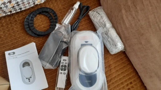 Получила заказ в срок, доставка достаточно быстрая, комплектация соответствует. Может отлично! Попробовала на окне, зеркале и даже на кухонном фартуке, есть ворсинки, но в целом хорошо полирует поверхность. Край стекла (фартук) видит, но при развороте может отклеиться надо контролировать. Управляется пультом. Хороший агрегат - доставил только положительные эмоции, с большим нетерпением жду весны опробовать на наружних стеклах окн