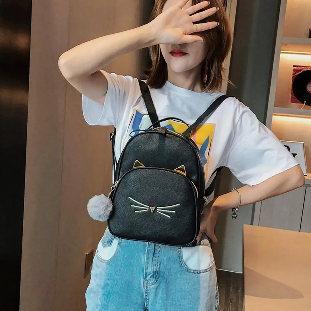 3 шт.компл. кошка печать путешествия рюкзаки Для женщин кожаные сумки на плечо держатель для карт студенческие Школьные Рюкзаки Сумка Рюкзак Для Путешествий
