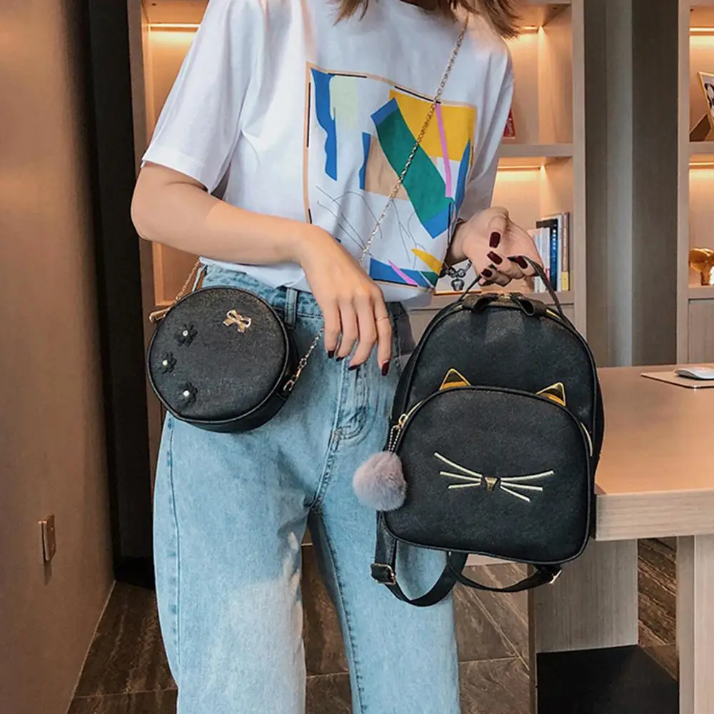 3 шт./компл., модные композитные сумки с принтом кота, дорожные рюкзаки, сумки на плечо с цепочкой, Женские повседневные Рюкзаки из искусственной кожи, сумки через плечо, клатч