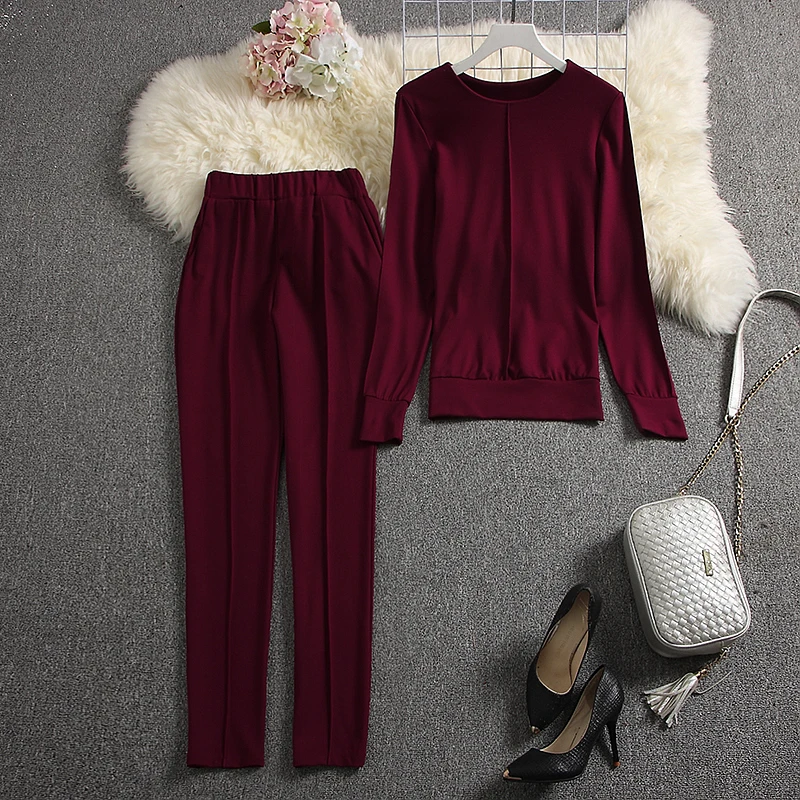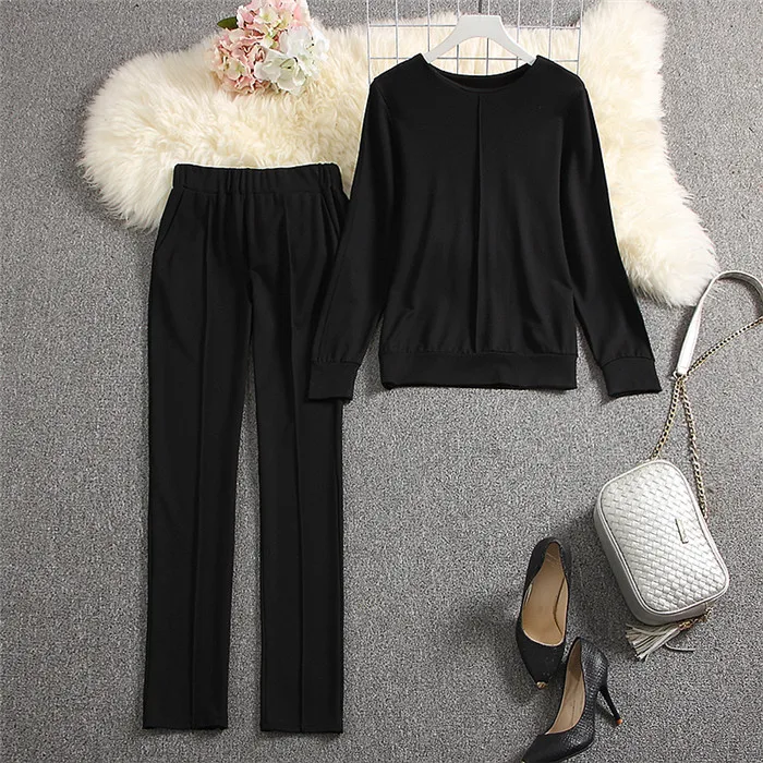 Костюм женский ALPHALMODA, свитер с длинным рукавом и штаны, однотонный, на осень 2019