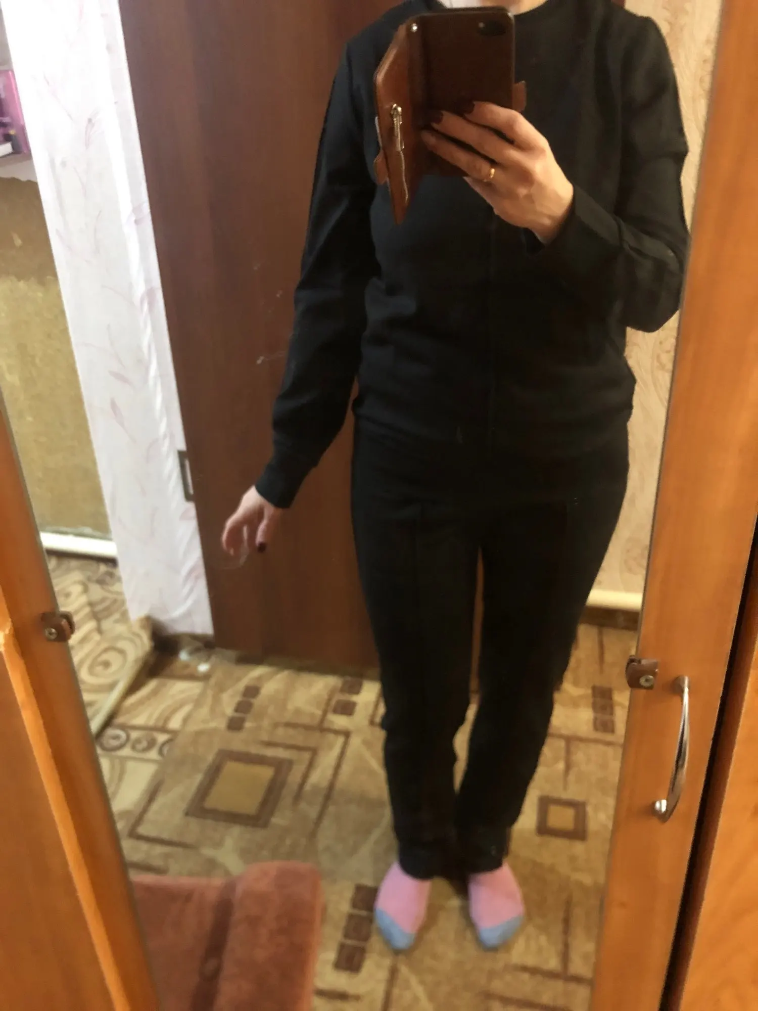 Костюм хороший,качество высокое,но он из трикотажа,и скорее на лето или начало осени,он не теплый,видимо я не прочитала состав ткани,когда сделала заказ,на высокий рост подойдет,мой рост 168 см и мне брюки длинны