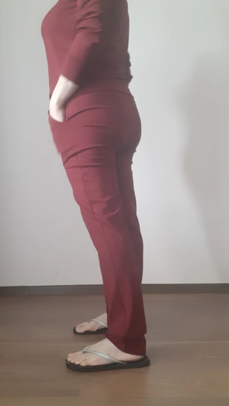 Костюм очень красивый, пошит безукоризненно, ткань мягкая, очень приятная на ощупь. На мои параметры 89-67-95 сел отлично. Рост 1.64, штаны в пол. Посылку получила за 2.5 недели. Я очень довольна, спасибо большое!