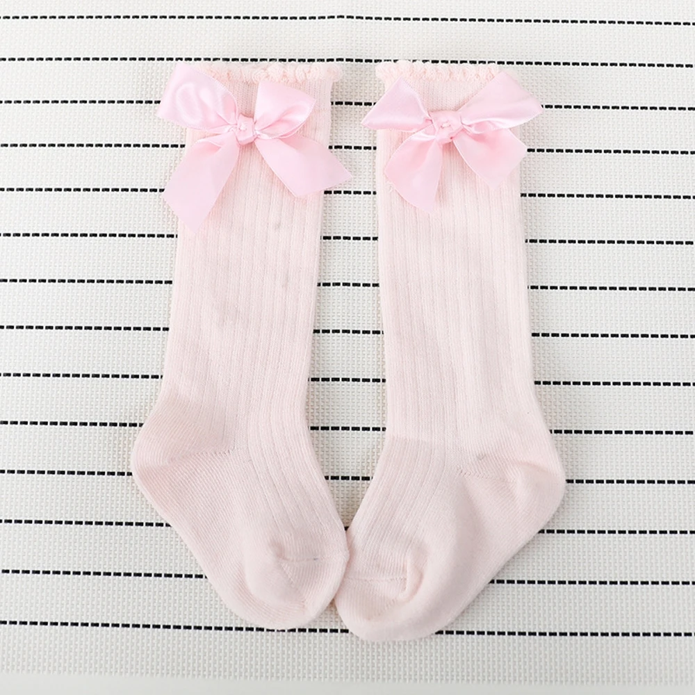 Детские носки для малышей девочек с большим бантом до колена длинны...