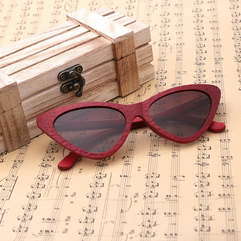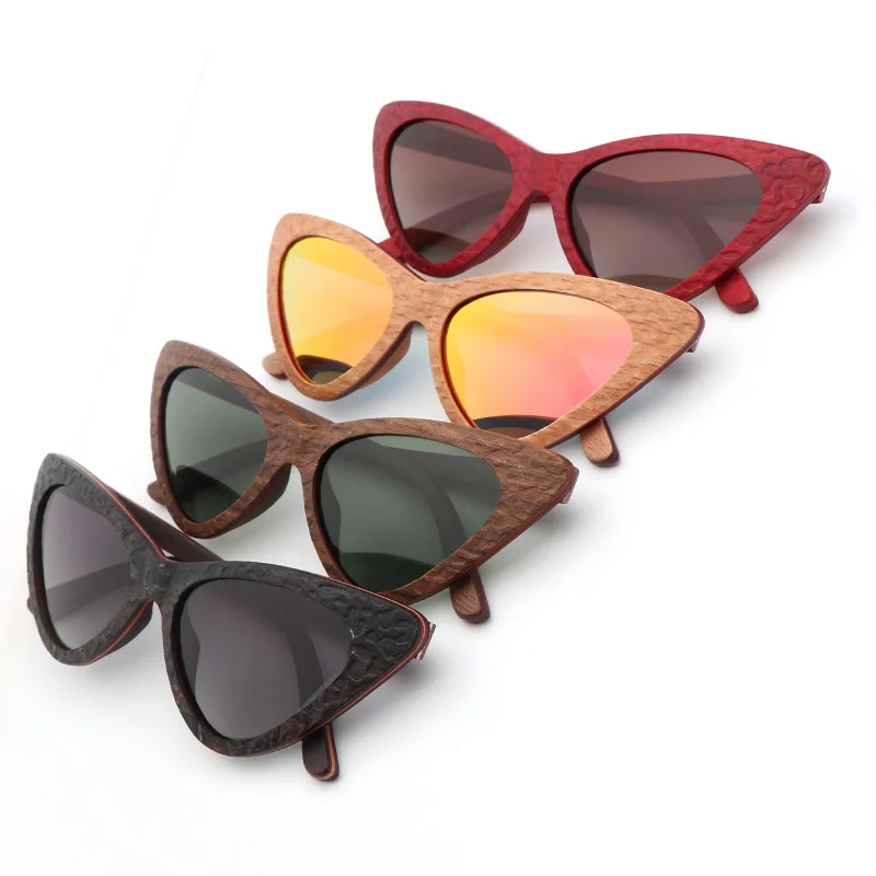 Новые тисненые солнцезащитные очки деревянные Модные женские солнцезащитные очки кошачий глаз поляризационные UV400 для женщин бамбуковые очки ручной работы солнцезащитные очки