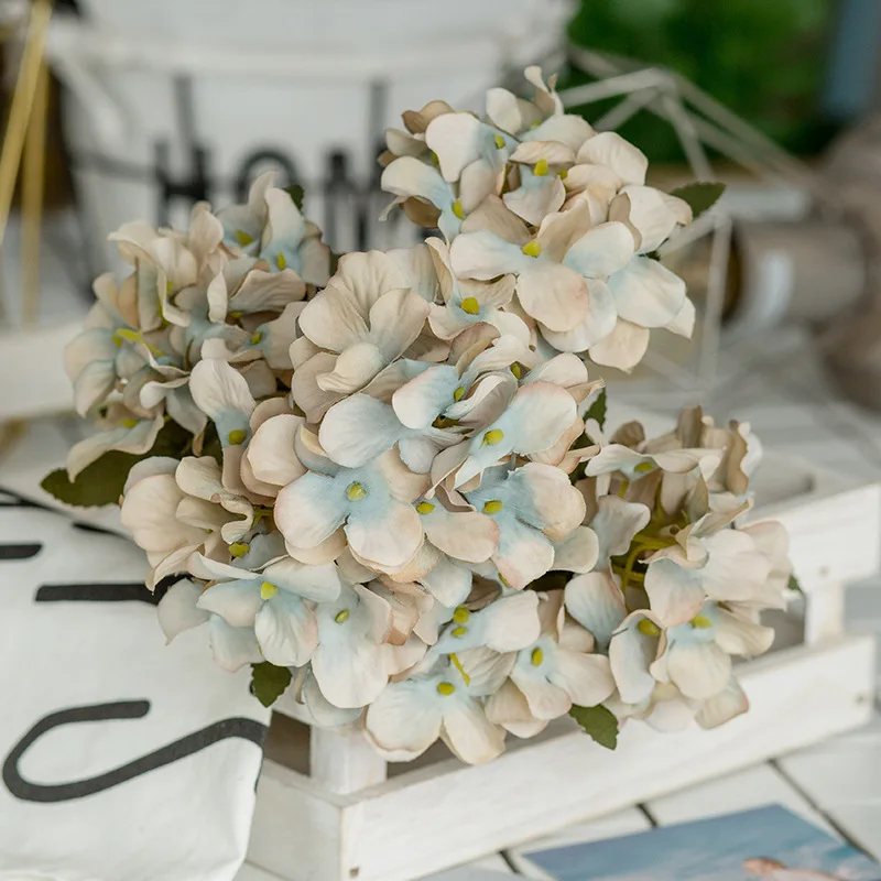 Искусственные шелковые цветы, букет из 6 искусственная Гортензия, для невесты, для украшения дома, свадьбы