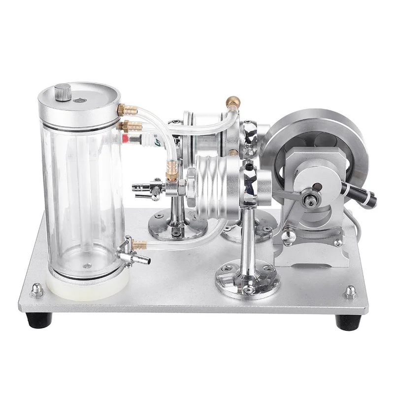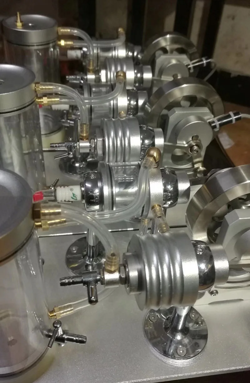 Название товара: газовый двигатель Hit & Miss Цвет: серебристый материал: алюминиевый сплав об/мин: 2000 ~ 6000 Вес: около 2 кг Размер двигателя: 22*12*15 см (Д * Ш * В) диаметр маховика: 7 см напряжение: 3,6 в топливо: керосин или бензин комплектация: 1 газовый двигатель Hit & MissХарактеристики этого двигателя1. Можно сжигать спирт. Концентрация спирта невысокая, можно использовать самый низкий ликер 58 градусов, смазка не требуется.2. Прозрачную камеру сгорания можно увидеть изнутри, и наглядно наблюдается рабочий процесс двухтактного двигателя внутреннего сгорания, что удобно для изучения рабочего принципа двигателя внутреннего сгорания.3. Внешняя часть камеры сгорания снабжена прозрачной втулкой с водяным охлаждением. Внутренняя часть-вода. Вода 360 градусов полностью закрывает камеру сгорания для охлаждения камеры сгорания. Не нуждается в водяном насосе и автоматически циркулирует. Когда температура воды достигает 90 градусов и более, она естественным образом конвектуется. (Дистилляционный резервуар), вода стекает в сэндвич резервуара, чтобы нагреть топливо посередине, топливо нагревается легче и, наконец, всасывается в двигатель.4. Угол зажигания регулируется. Когда двигатель достигает определенной стабильной скорости, регулятор угла зажигания настраивается на предвоспламенение. Регулируемый от 0 до 30 градусов, найдите лучший угол зажигания для достижения высочайшей эффективности двигателя5. Регулируемая скорость CDI, наш оригинальный Регулируемый скоростной воспламенитель может электронно регулировать двигатель6. Эта машина похожа на двигатель Стирлинга. Также есть силовые цилиндры и соответствующие цилиндры. За исключением прозрачных деталей, все они металлические, а камера сгорания кварцевая. Втулка с водяным охлаждением-пуленепробиваемое стекло, поршень-стальной хромированный поршень, гильза цилиндра-латунь, а внешний корпус-алюминиевый сплав.