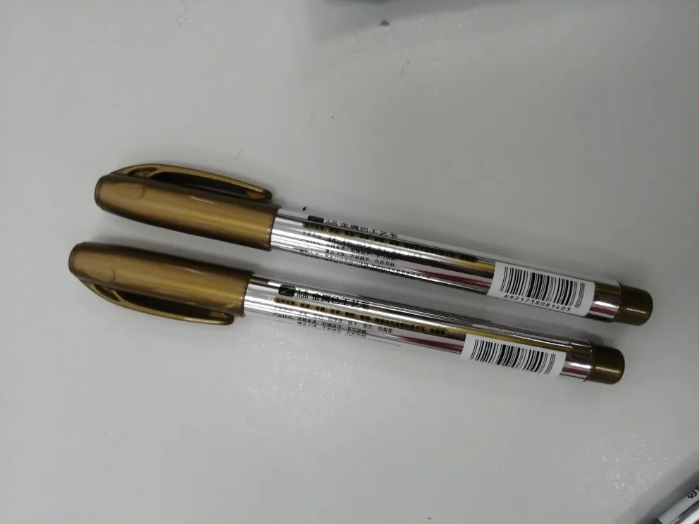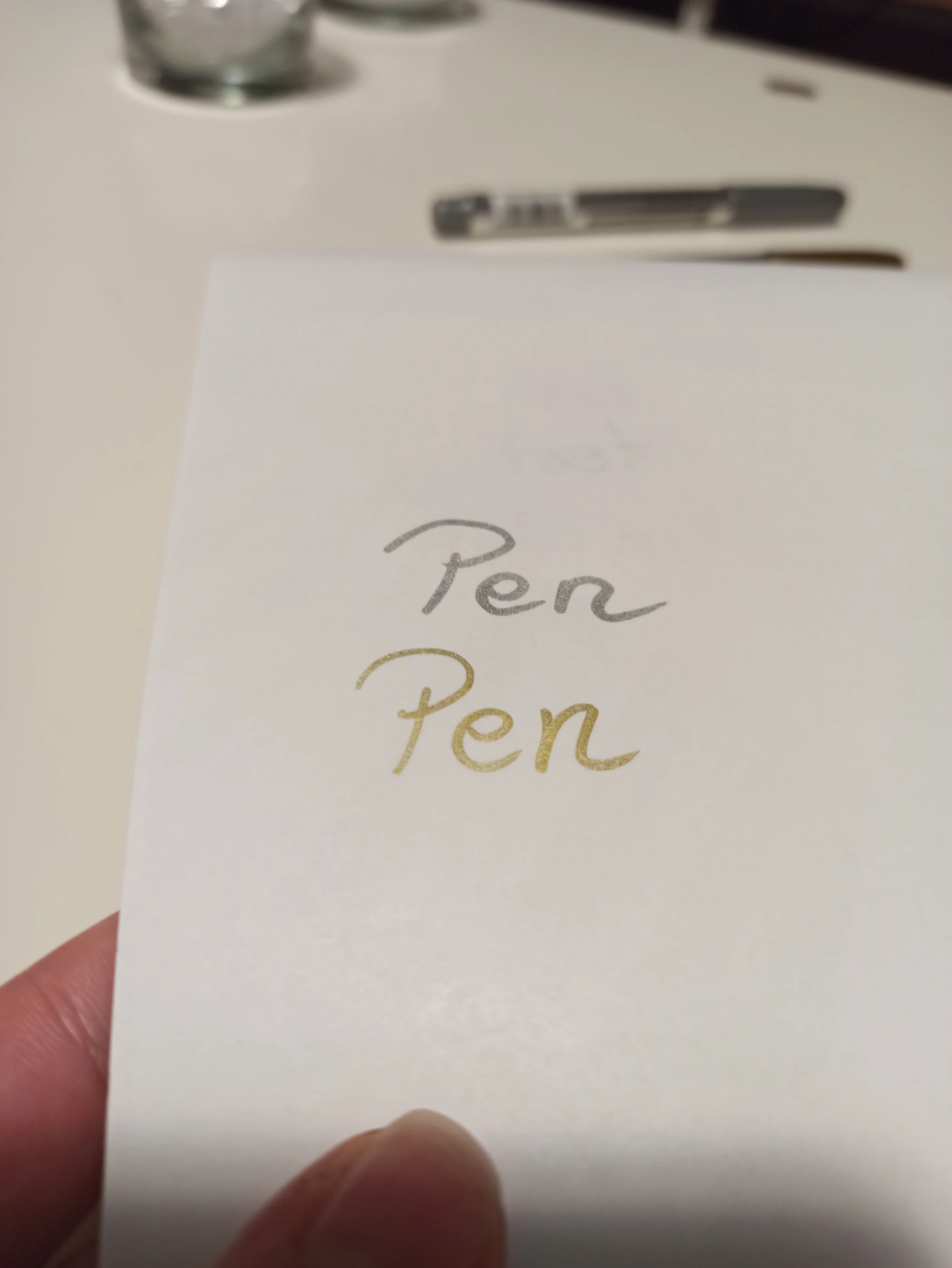 Золотой маркер пишет то зелёно-жёлтым, без золота, то золотом.
