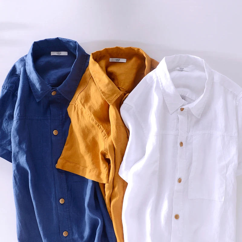 100% льняная новая дизайнерская летняя рубашка мужская брендовая Повседневная желтая рубашка мужские однотонные дышащие рубашки Мужская модная сорочка camisa