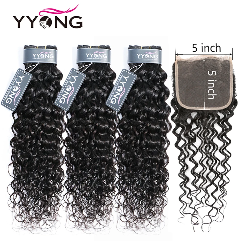 Волосы Yyong 4x4 и 5x5 с застежкой пряди ках, бразильские волнистые пучки с застежкой, Реми, 34 пряди, натуральные волосы, переплетенные с застежкой
