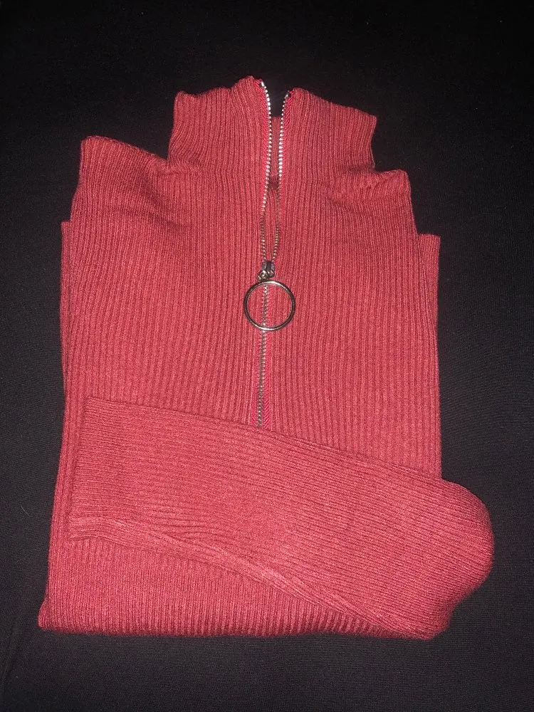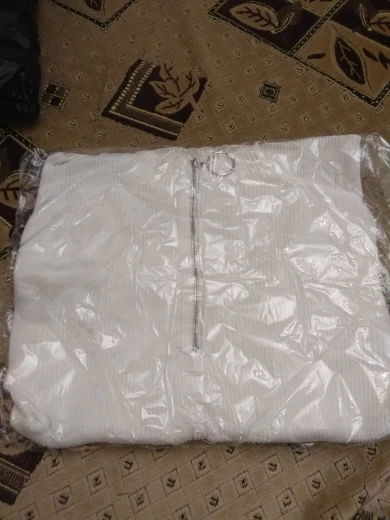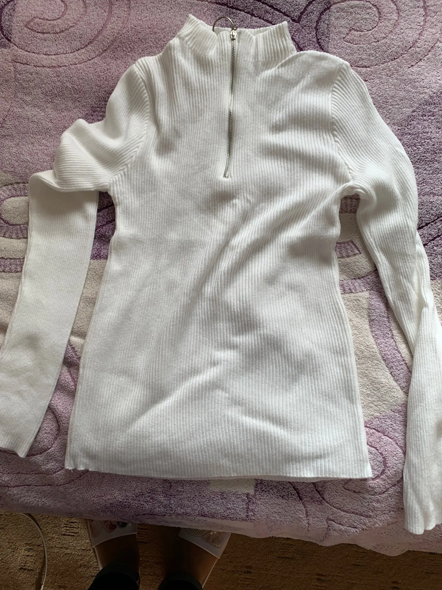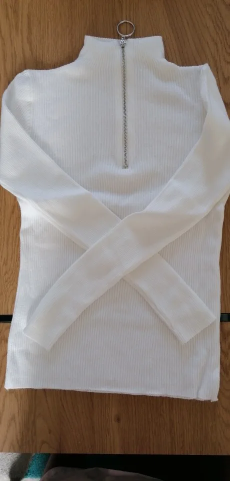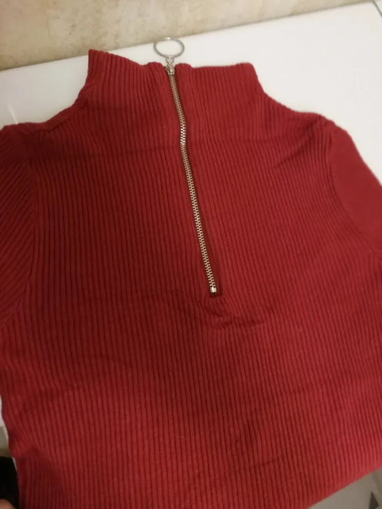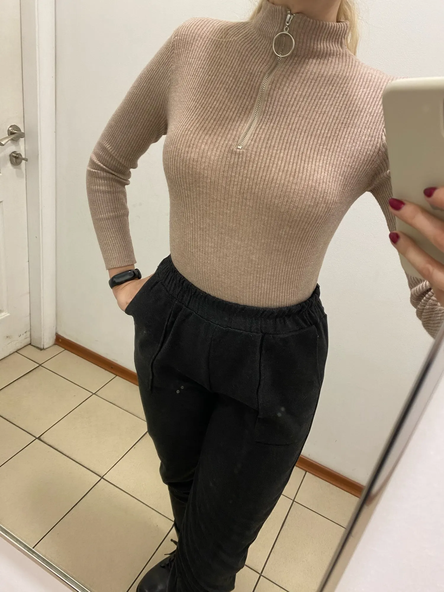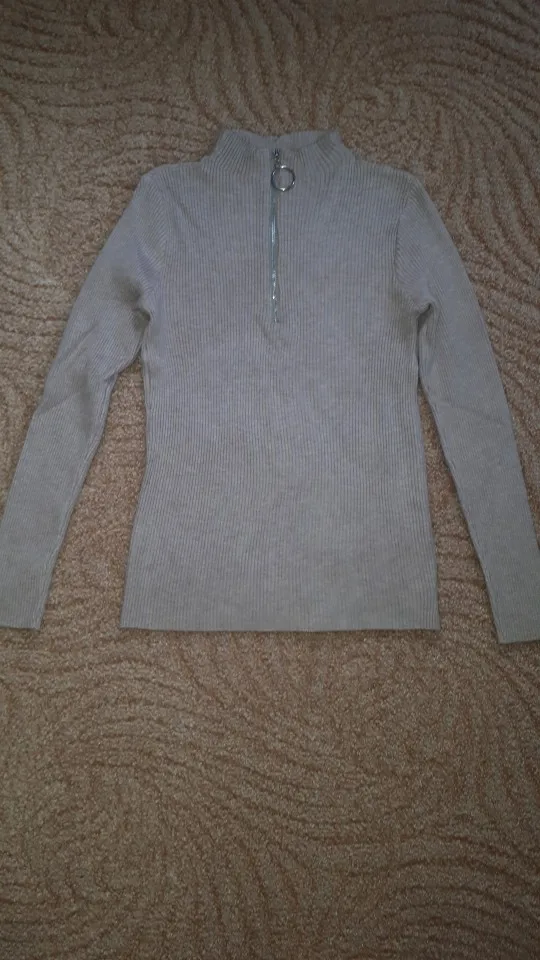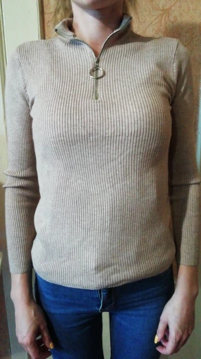 Водолазка пришла за месяц. Очень приятный мягкий материал, но думаю после стирки он уже таким мягким не будет. Замок немного криво вшит, но этого на теле особо не видно, только если разложить водолазку, например, на полу. Из-за того, что очень мягкий материал, замок, соответственно, топорщится внизу в области груди. Тоже не критично, думаю, что на большой груди так не будет топорщиться. Что касается рукавов, так это вечная тема китайских водолазок. У меня есть подобная водолазка, только без замка. После пары стирок водолазка «подскочит» на боках и рукава превратятся почти в 3/4. Ничего сверхъестественного от этой водолазки после стирок не жду, но пока мне всё понравилось, хоть рукава уже короткие.