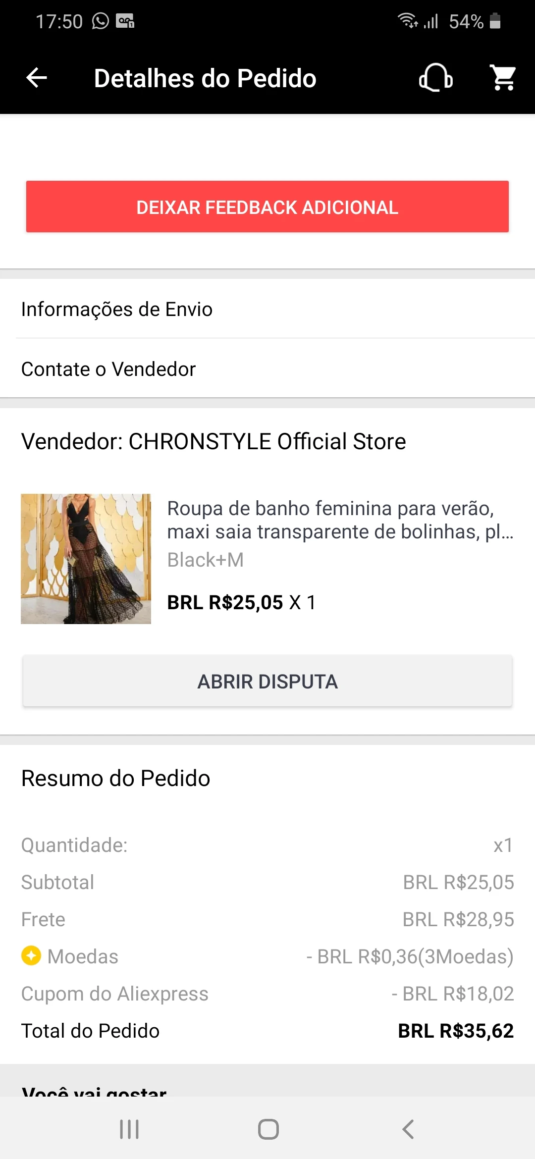 Страна: BR Color: Black Size: M Доставка: Standard Shipping 04.11.2020
