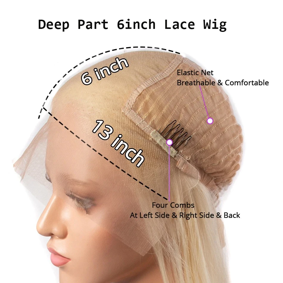 Парик из натуральных волос, прозрачный, медовый, 613, 28, 30, 32 дю...