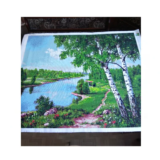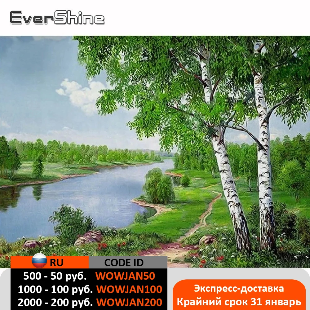 Алмазная мозаика 5D "сделай сам", пейзаж, картина из страз, березы, полное изображение реки стразы набор для алмазной вышивки