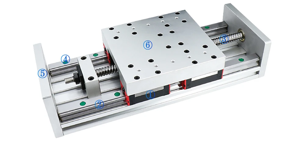 ① Слайдер ② линейные направляющие ③ стержень шарикового винта ④ Пылезащитная крышка