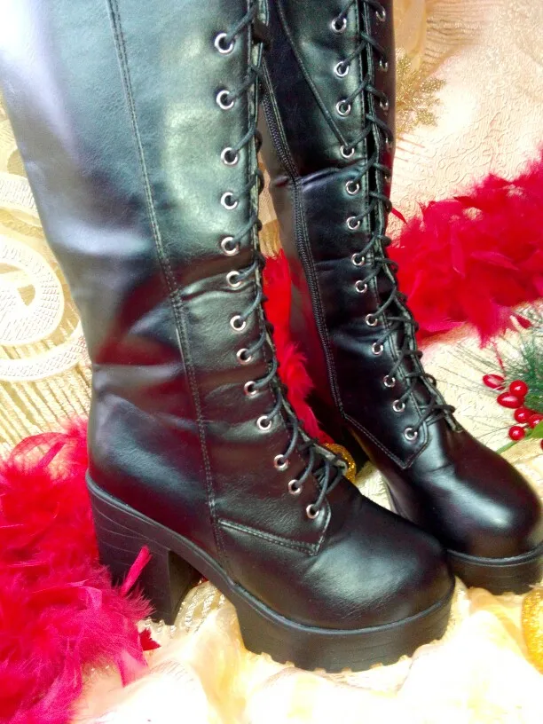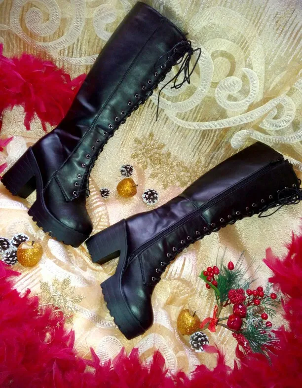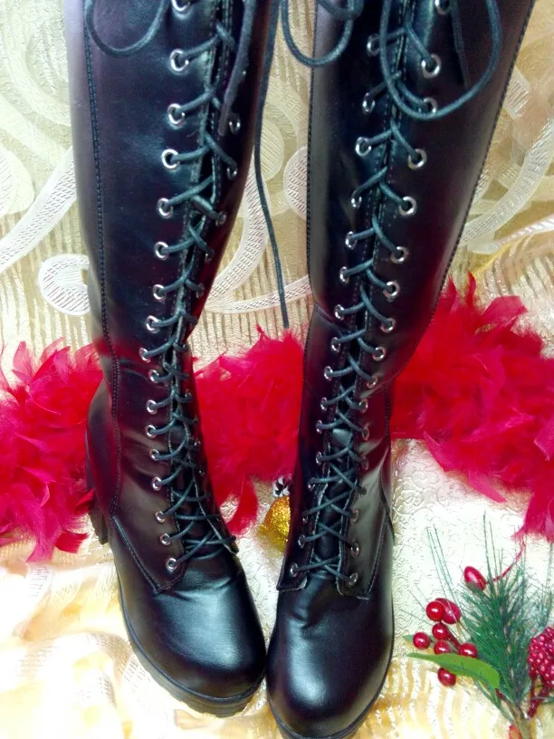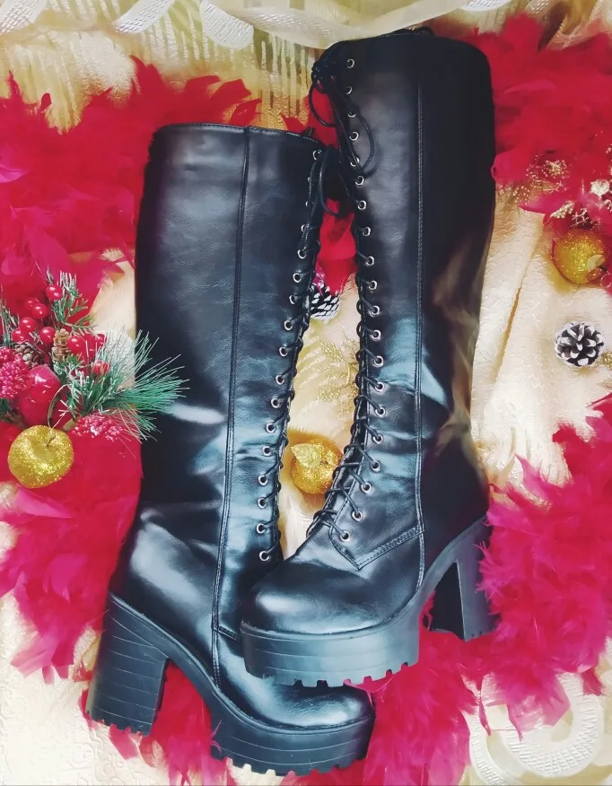Женские сапоги до колена MORAZORA, черные сапоги на платформе и высоком каблуке, на шнуровке, в стиле панк, большие размеры 43, Осень-зима 2021