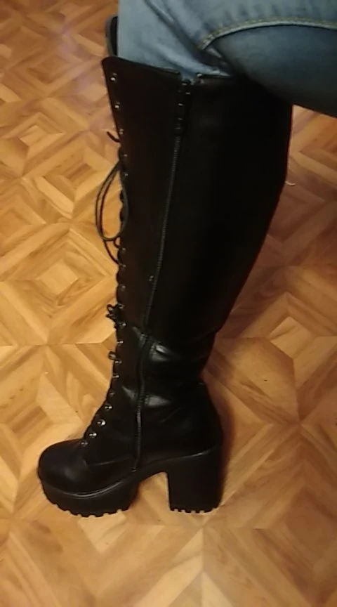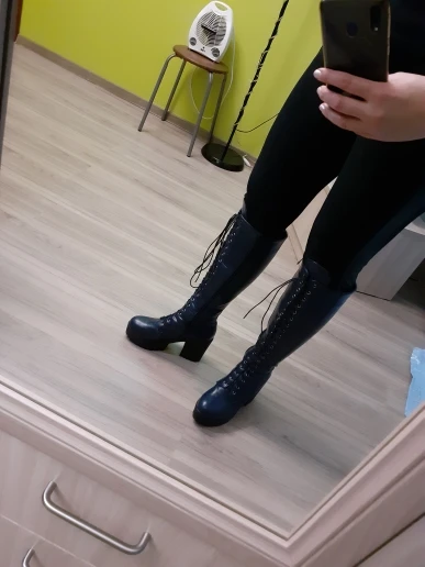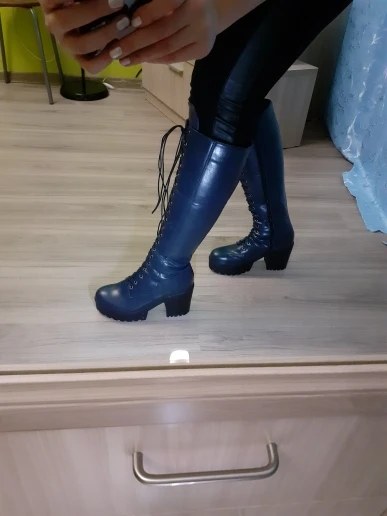 Сапожки давней мечты теперь у меня! Все как я и представляла,основываясь на отзывах и фото товара в описании. Материал прочный, держит форму. Сапоги максимально удобные, аккуратно изготовлены. В минус 15 холода не почувствовала.Обувала на колготки(синтетика)+носки слегка утепленные.Ношу с джинсами на тонкие ноги-и достаточно широкая голень у сапог мне на пользу) Фотографировала уже обутые пару раз, не терпелось поносить такую стильную красоту На российский 35-36 взяла 37 размер(6). Идеально впору, меньше брать не стоит.Заказ отправлен быстро.Получила спустя 22-23 дня. По России на удивление шли всего 5 дней! Продавец - умничка) Доставка из Китая прямиком в Новосибирск и оттуда сразу в Кемеровскую обл. По Китаю дольше двигалось до аэропорта)Трек номер первоначальный сменился и отслеживание шло по двум сразу) Запах от резиновой подошвы или клея очень быстро выветрился,за пару часов.Только если в шкафу постоят-опять скапливается. Но это неважно. Рекомендую товар и отличный магазин