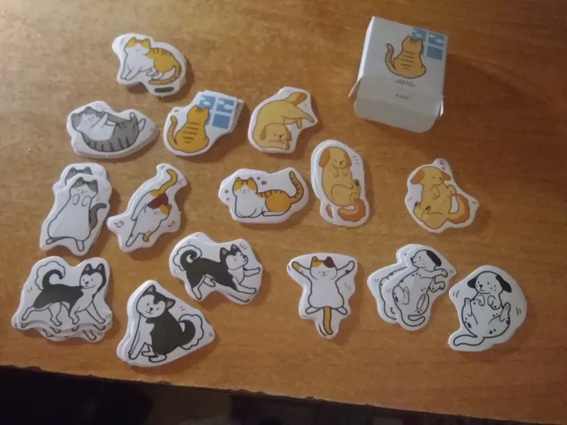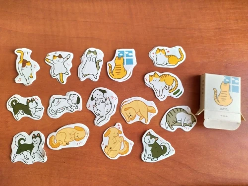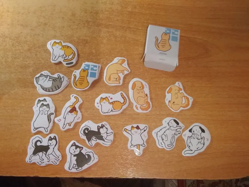 Очень много милых наклеек и кошечки и собачки. Клеятся хорошо, края ровные, для украшения открыток или тетрадей самое то! А вот для телефона или ноутбука не подойдёт