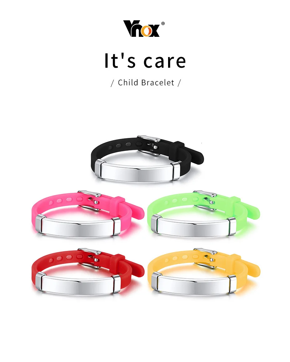 Персонализированные детские браслеты Vnox из мягкого силикона и нержавеющей стали, детские браслеты для девочек и мальчиков с именем экстренного имени