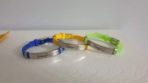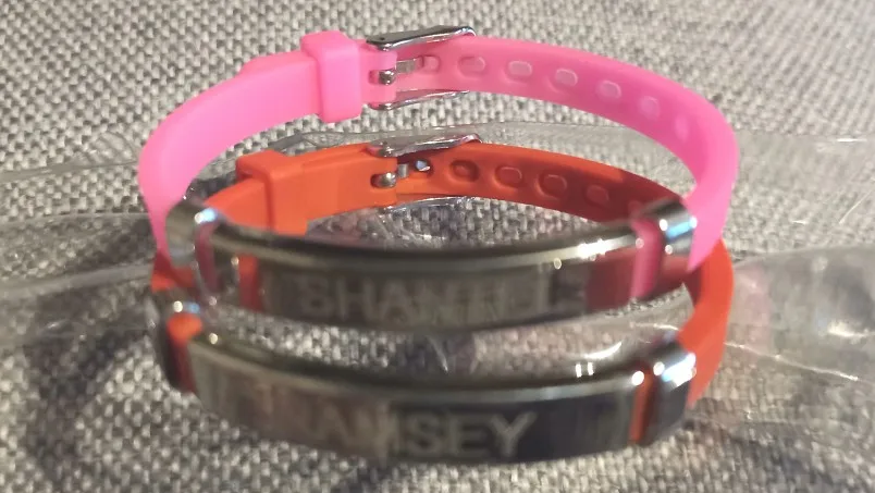 Когда я получил эти браслеты, отверстие отсутствует. Нам нужно снять силиконовую пленку, но она не такая жесткая. Гравировка была отличной и браслеты подходили мне, даже если я взрослый. Спасибо покупателю за прекрасные товары!