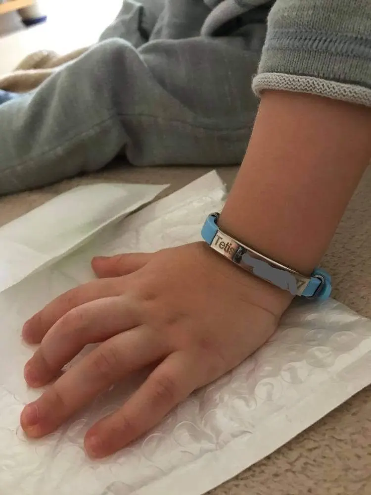 Заказ был отправлен быстро, доставлен в течении 2х недель. Цвет браслета яркий, но надпись очень бледная, в разы отличается от заявленного. Конечно это не критично, при желании можно прочесть текст. Надеюсь что вообще не понадобится воспользоваться ими. Прийдется ещё раз Заказывать гравировку. Но обратившись к продавцу он любезно согласился вернуть часть денег. Материал браслета очень мягкий и приятный к телу. Браслет и все его детали выполнены качественно. Дети носят с удовольствием, сама бы носила. На браслете есть много отверстий, подходит как на годовалого, так и на взрослого человека.