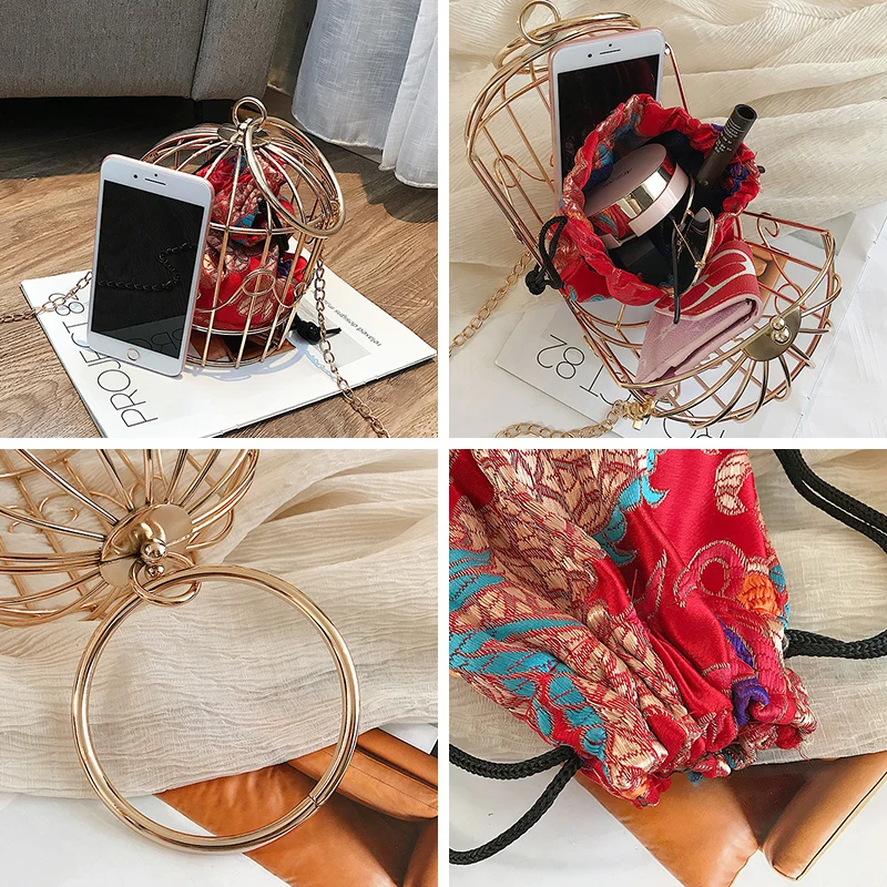 Женская вечерняя сумочка, клатч в виде птичьей клетки, металлический каркас, вышивка, сумка на плечо, кошелек, женская сумка с золотой кисточкой, 603