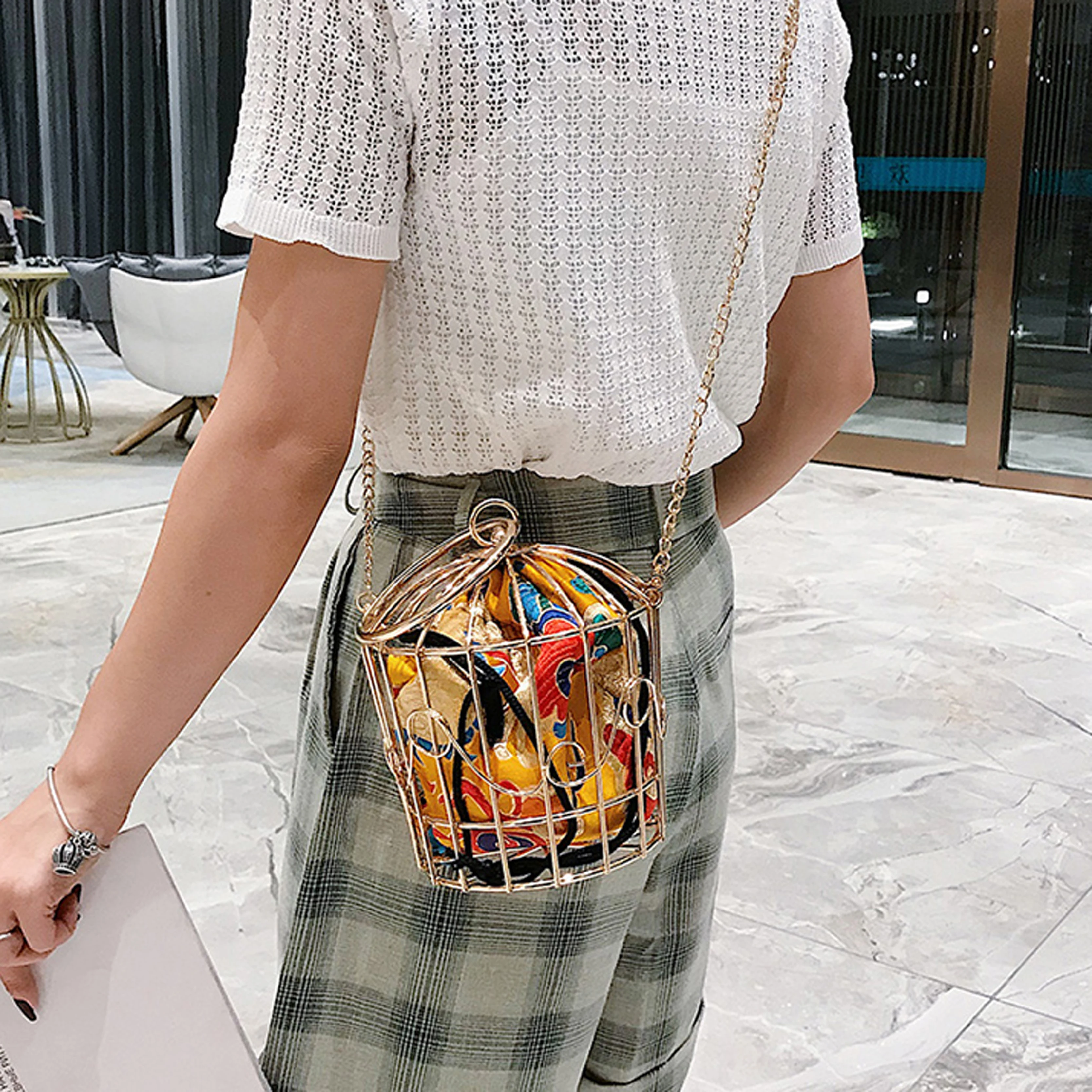 Женская вечерняя сумка-клатч в виде птичьей клетки с металлической ...