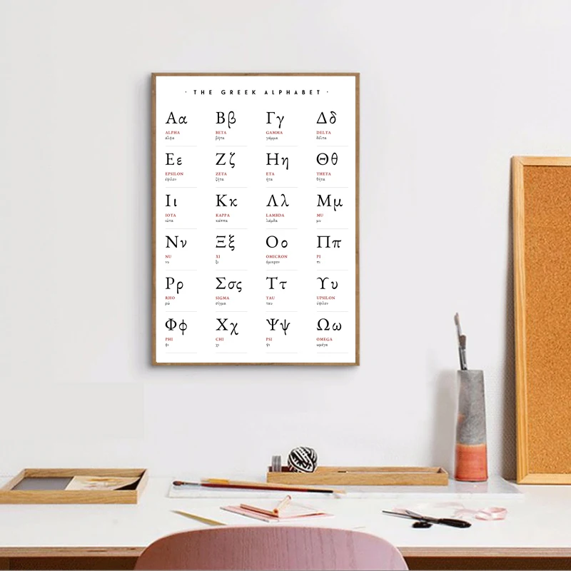 Греческий алфавит печатает греческие буквы Математика искусство холст живопись Настенная картина Математика учебный плакат Математика классный Декор