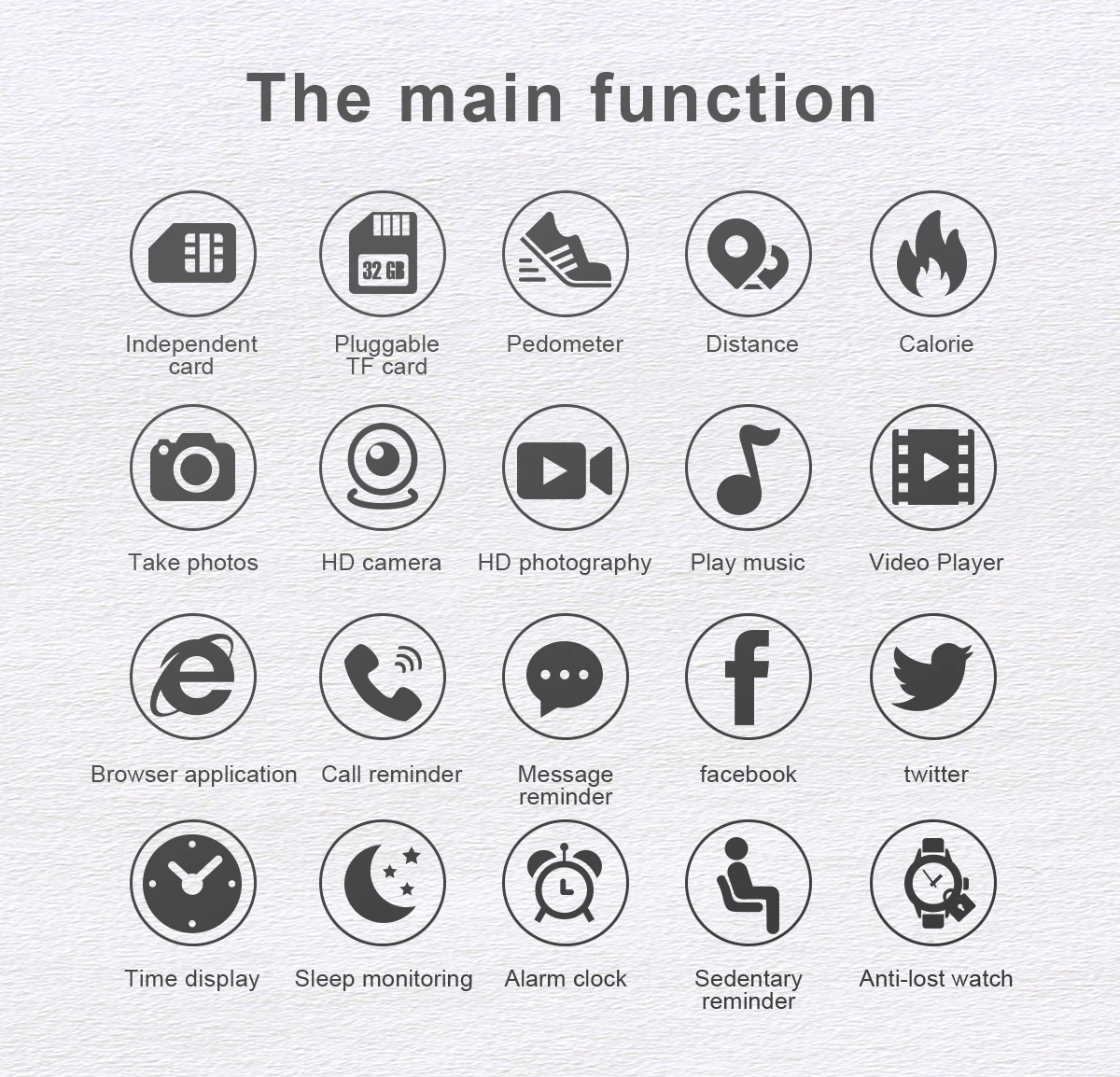 3D измерение, измерение шагов, напоминание о сидячем положении, мониторинг сна, защита от потери, удаленная камера