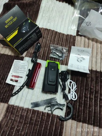 Фара (4000) и задний свет с хорошей батареей, не будет оставаться в темноте половинной педалью. Фара мощная, задний свет справа. Рог классный. Только проблема: поставляется с линзой (пирсинг) немного свободно, сохраняя шум, решена с небольшим кусочком резины. Кажется, что у каждого есть что-то свободное, чтобы сделать немного заметное на педалях, должно быть датчик движения.
