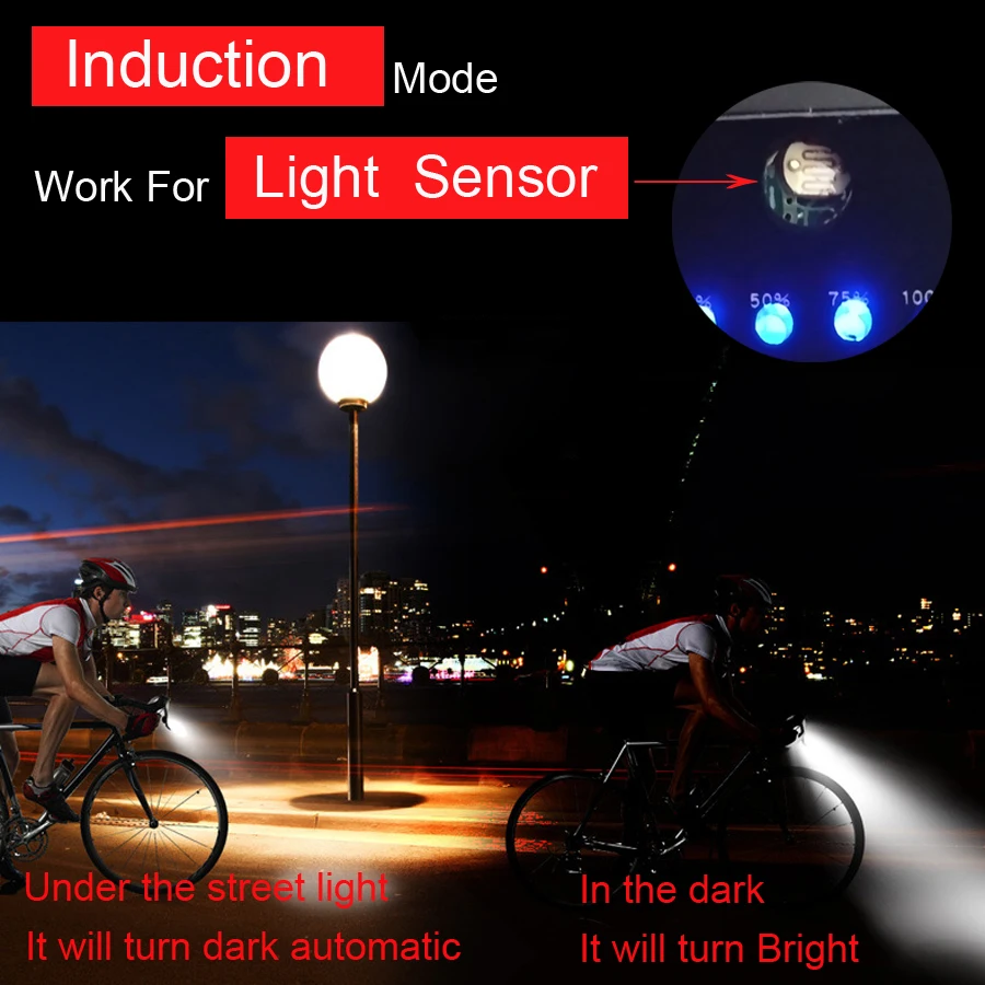 20004000 мАч Смарт индукция велосипед передний свет комплект USB Перезаряжаемый светодиодный задний фонарь и фара с роговым фонариком для велосипеда