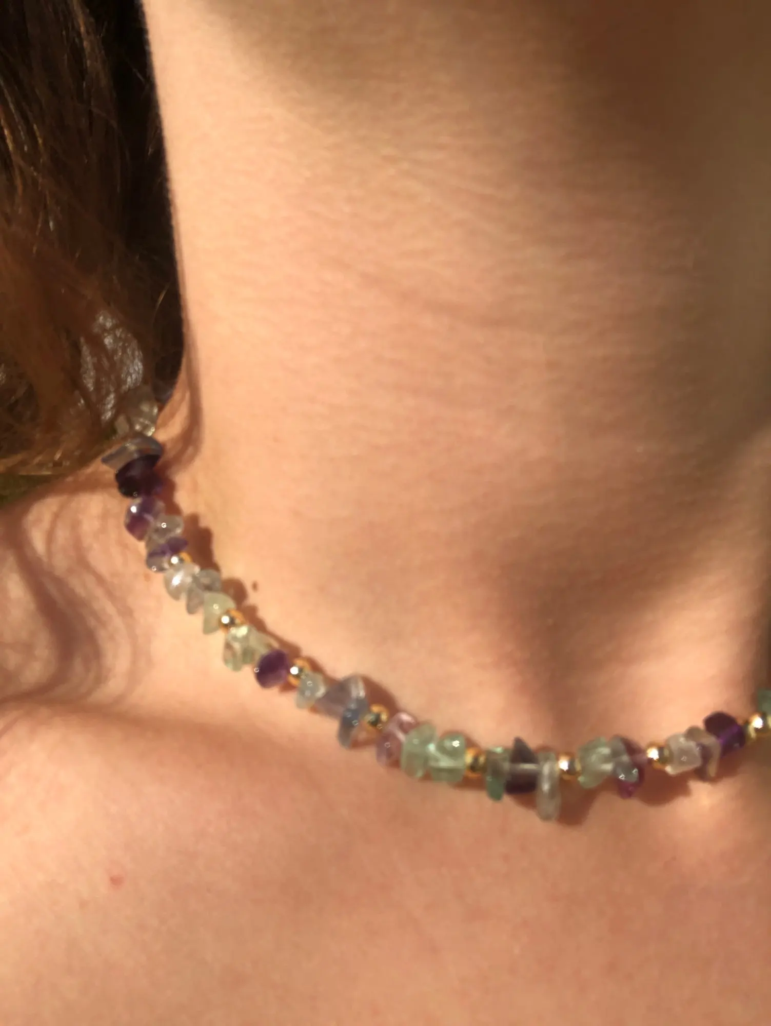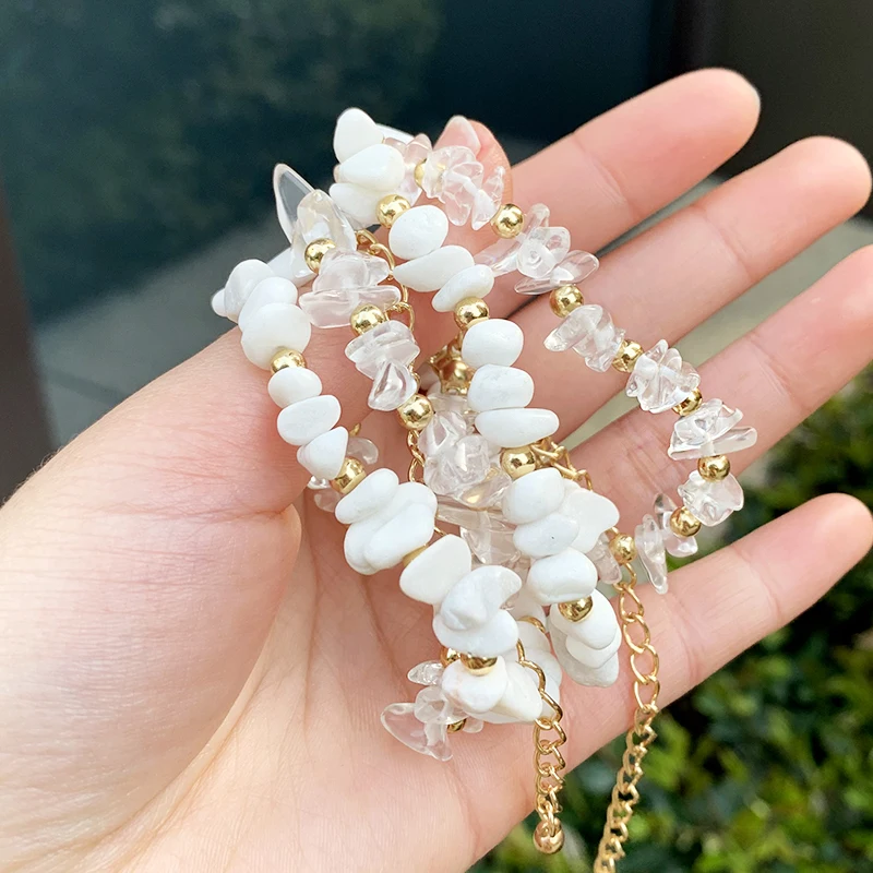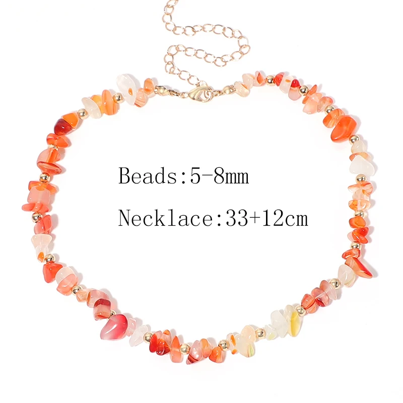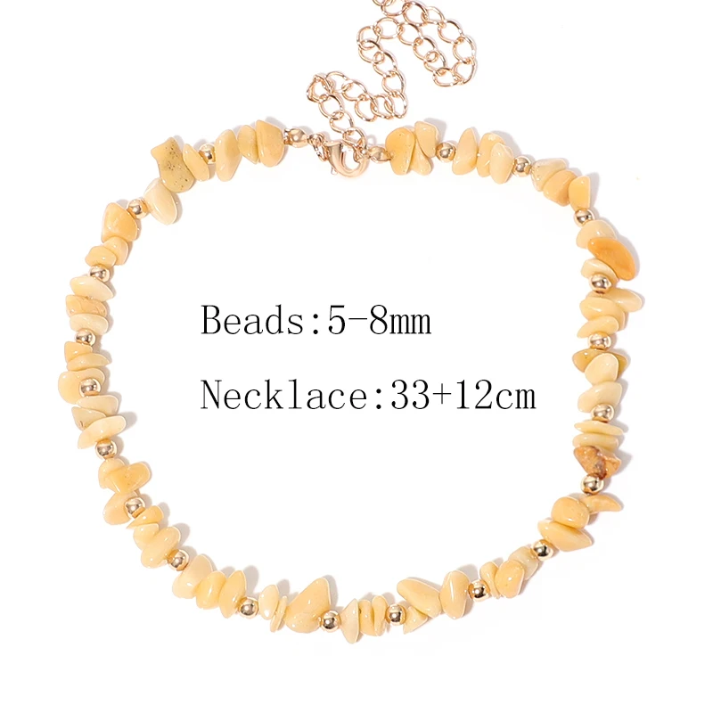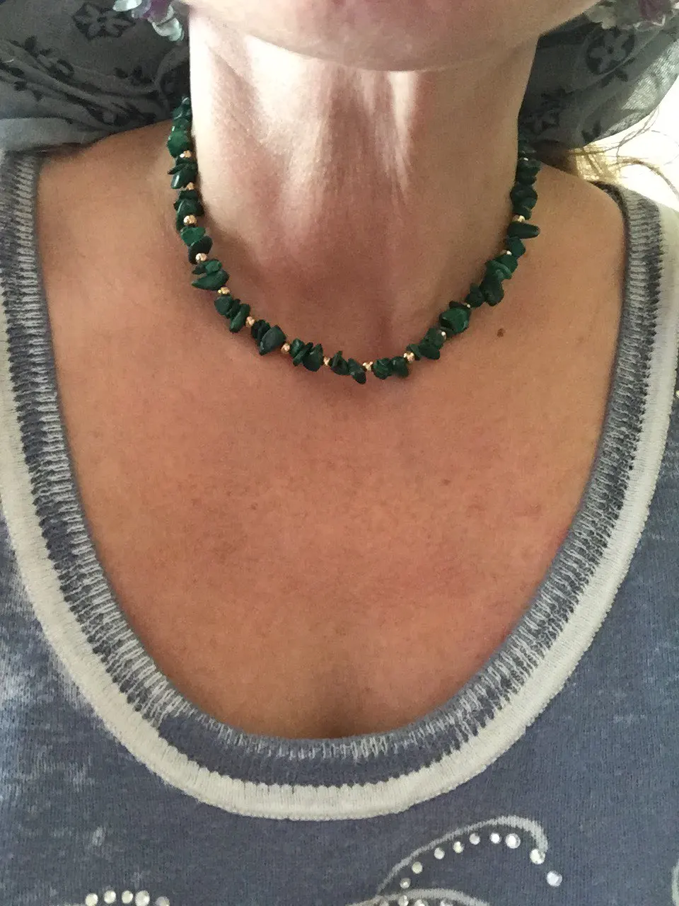 Оно хорошее. На шею плотно, как чокер садится. Камни на фото глянцевые, по факту полуматовые и матовые. В данной расцветке универсальность в том, что много оттенков, светлые тона и под много вариантов одежды пойдёт. По факту бежевых кусочков нет вообще, и цвет более темный всей композиции, или даже более зелёный…более логично собрано, цвета не в разброс. Не смотря на мелкие минусы смотрится оно красиво и выглядит не дёшево. Летнее, симпатичное, трендовое. Цепка и замок не хлипкие.