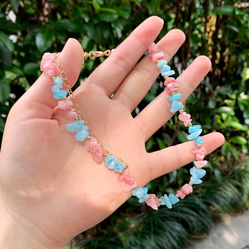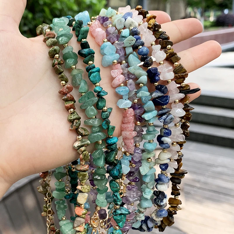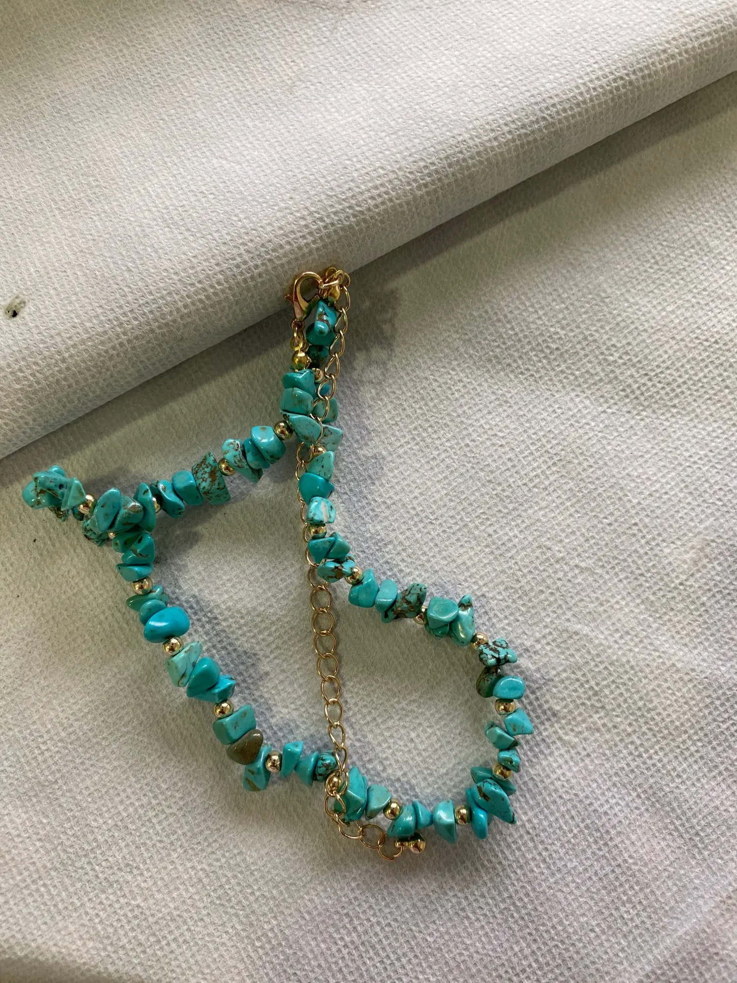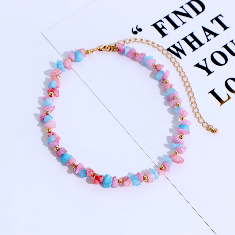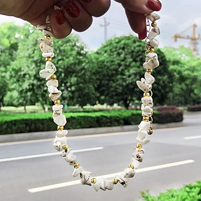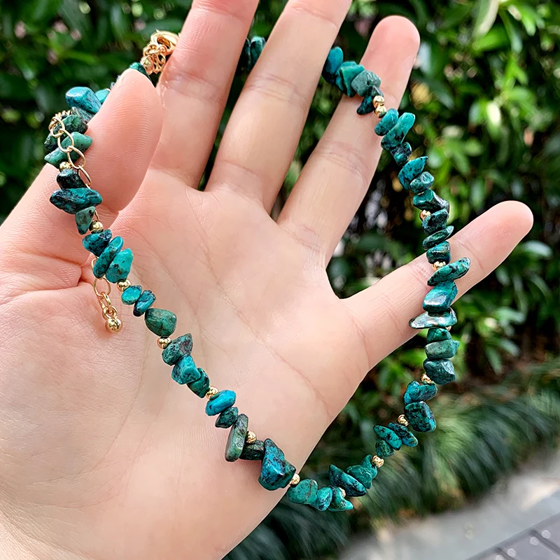 Ожерелье-чокер женское, с бирюзовыми бусинами, с полудрагоценными камнями